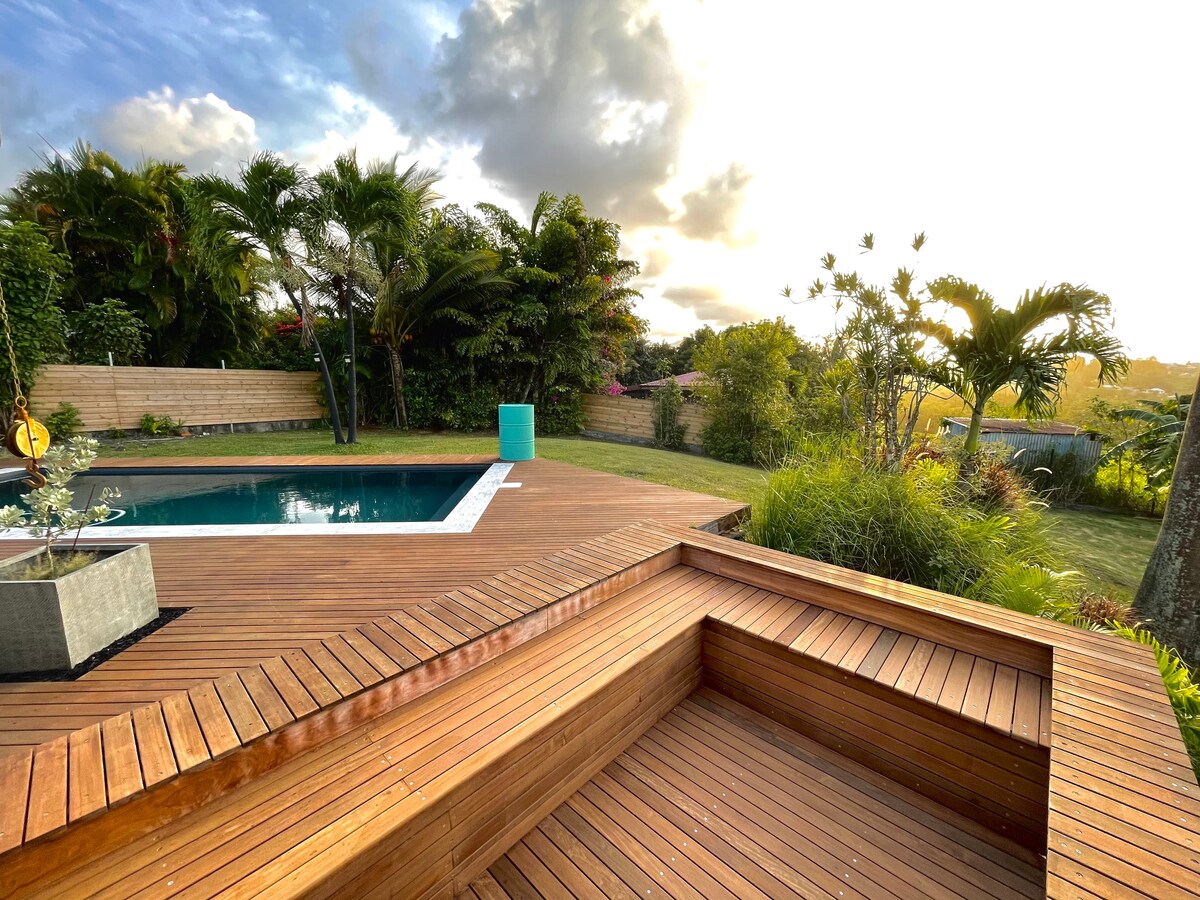 El bungalow Ixora, Clasificado 3 estrellas, íntimo y cálido, con sus 40 m², terraza incluida, ofrece un espacio funcional y confortable. Su decoración moderna con toques criollos combina madera y tonos suaves para armonizar con el entorno tropical. Incluye una acogedora zona de noche, un baño equipado, una luminosa sala de estar con sofá cama y una cocina. También podrá disfrutar de la piscina de la finca. Ideal para una escapada tranquila.