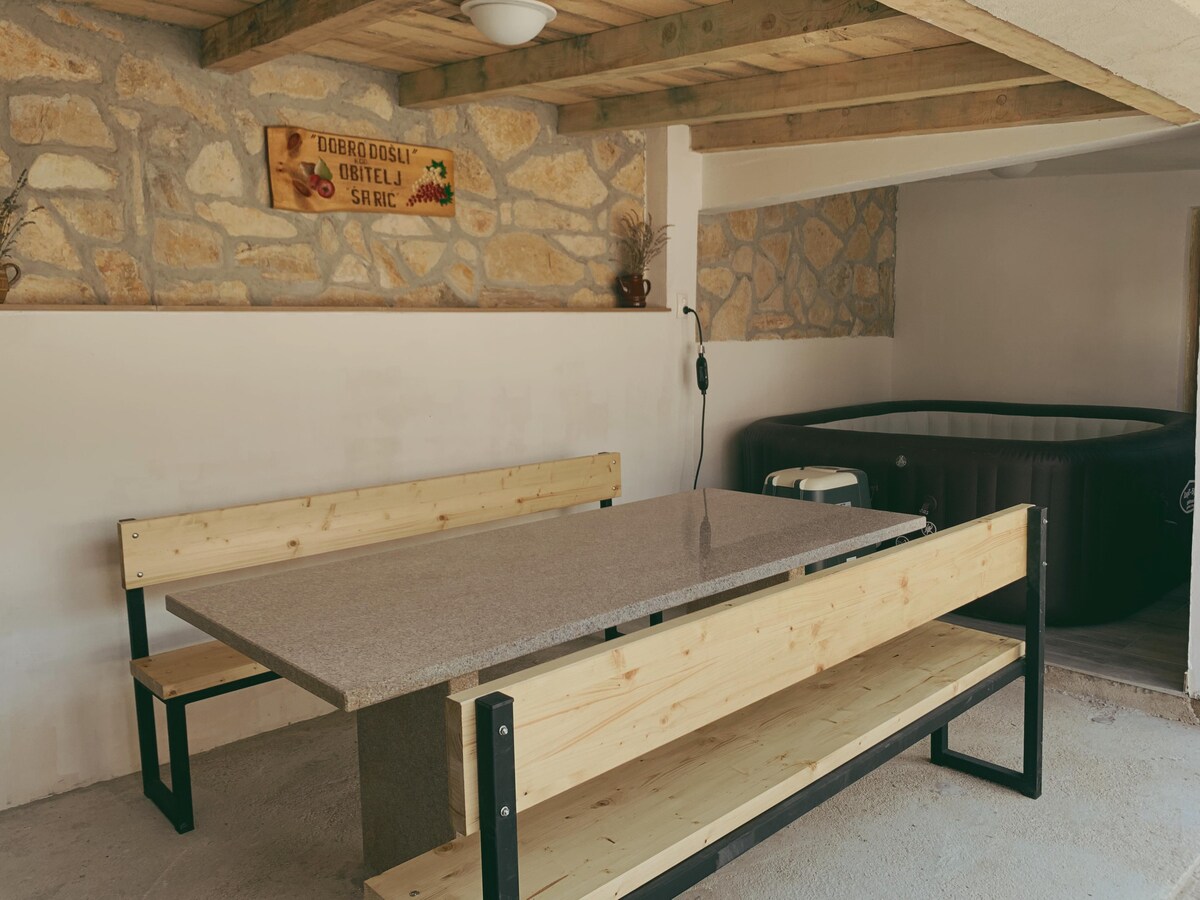 La finca Irena consta de dos casas tradicionales de piedra dálmata, ubicadas en una propiedad grande y completamente cercada que ofrece a los huéspedes paz, privacidad y un auténtico ambiente mediterráneo. El interior cuenta con elementos de piedra y madera, cuidadosamente combinados para preservar el espíritu de Dalmacia y crear un espacio cálido y genuino para la relajación.<br><br>Las casas tienen una superficie habitable total de 90 m² e incluyen dos dormitorios, una sala de estar, un comedor, una cocina totalmente equipada y dos baños.