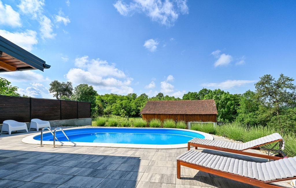 ¡Una casa de campo rodeada de vegetación con una orquesta permanente te espera! Se encuentra en el pueblo de Igrišće, cerca de Zagreb. Aquí encontrarás paz, tranquilidad, vegetación del bosque y el olor a hierba recién cortada. ¡La cabaña ofrece algo para todos, paz para la familia, romance por el amor! Una hermosa zona al aire libre con terrazas, barbacoa y en el prado puedes disfrutar de actividades deportivas. De junio a octubre, disfrutarás de una piscina privada con zona para tomar el sol, y durante todo el año te relajarás en una zona de bienestar privada.