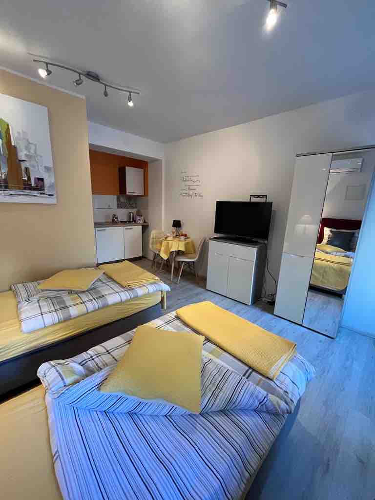 Very comfortable apartment for maximum 2 persons, with big kitchen equipped with all amenities, separate bedroom with air condition and tv, and bathroom with shower. Located in the center of historical town Skradin, only 50m from beach and marina.