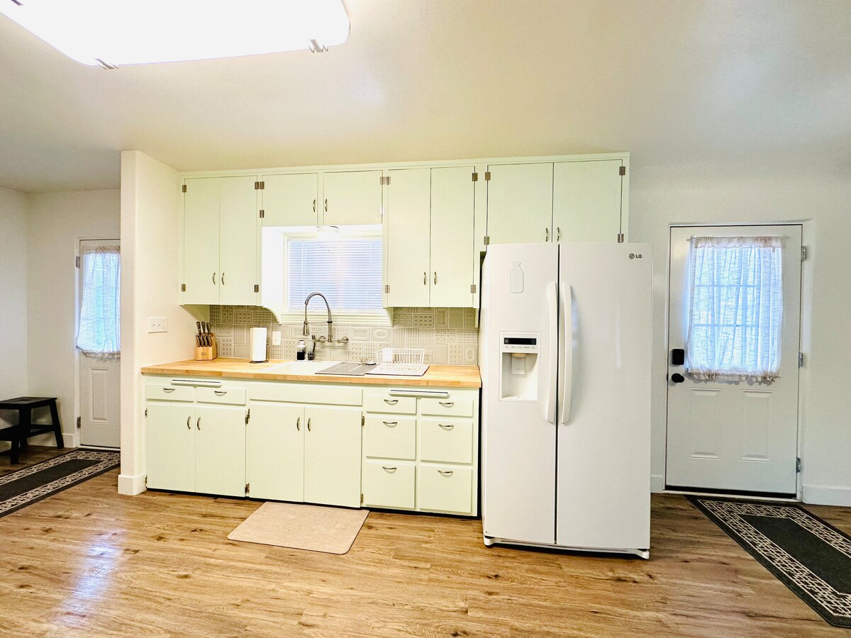¡Encantadora casa de campo céntrica en Safford! Disfruta de una cocina remodelada con encimeras de granito, un baño actualizado y suelos nuevos en todas partes. Relájate con un televisor de 70 pulgadas en la acogedora sala de estar o desconecta en el espacioso patio trasero con árboles frutales, bancos y una parrilla. La casa de campo cuenta con una cama tamaño king, dos camas de tamaño completo, un colchón de aire para espacio adicional para dormir y muebles de dormitorio completamente nuevos. Con un pequeño gimnasio, un amplio estacionamiento y un patio vallado para mayor privacidad, es un refugio tranquilo en Safford.