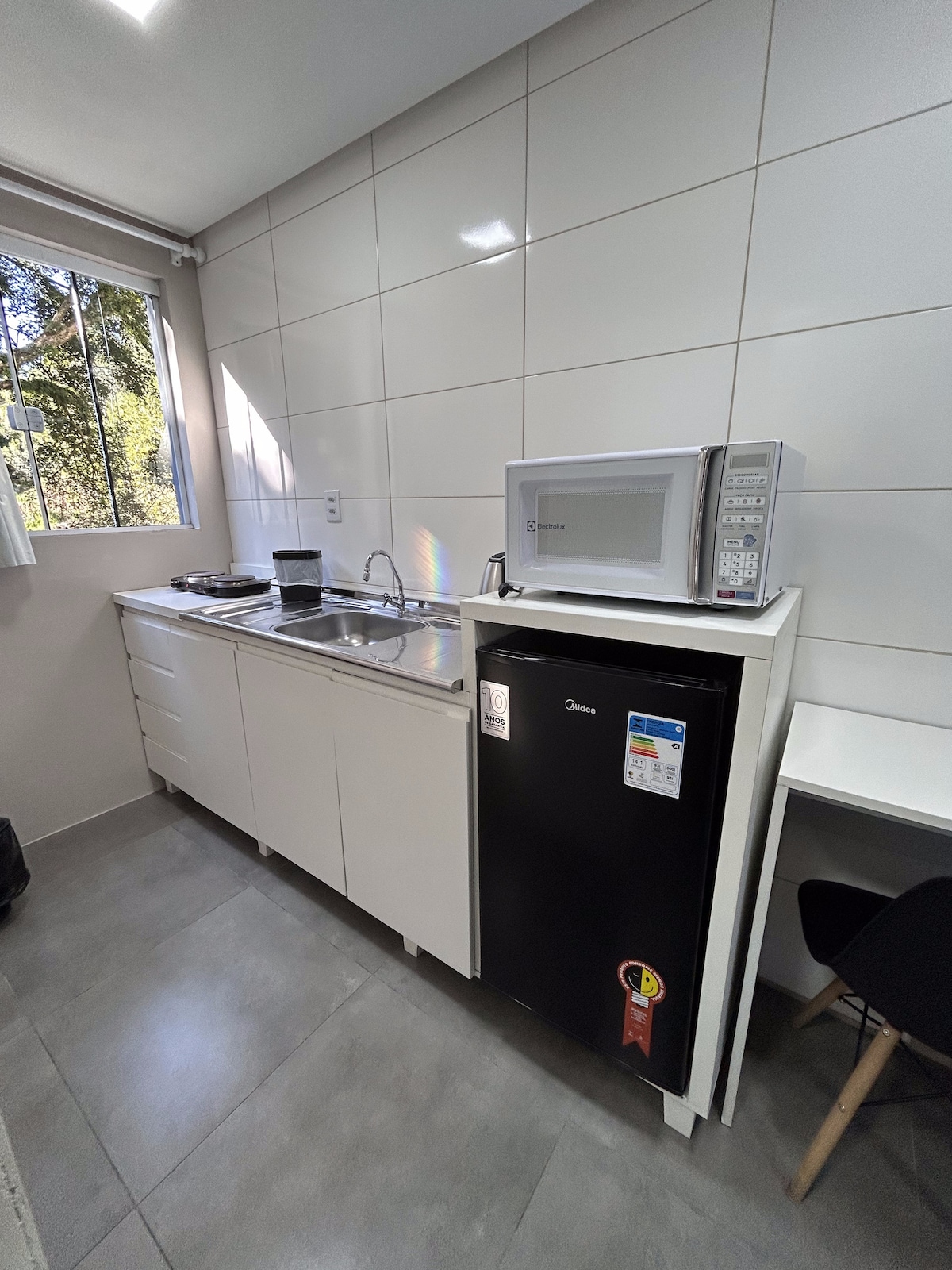 ¡Disfruta de este espacio elegante y acogedor! ¡Loft con espacios integrados! ¡La cocina está completa con todos los electrodomésticos nuevos y la habitación con una cama queem y un sofá cama doble! ¡Aire frío y caliente dividido! ¡Ubicación Otima! ¡Delante del lago Joaquina Rita bier! ¡Delante de la pizzería Héctor! Rua Torta 300 m, Feria de Colonist 300 m, Pizzería Cara de Mau 330 m, Rua Coberta 900 m. ¡Mercado Carrefour a 400 m, farmacia a 300 m, estación de autobuses a 300 m! ¡Estacionamiento giratorio cubierto dentro del edificio!