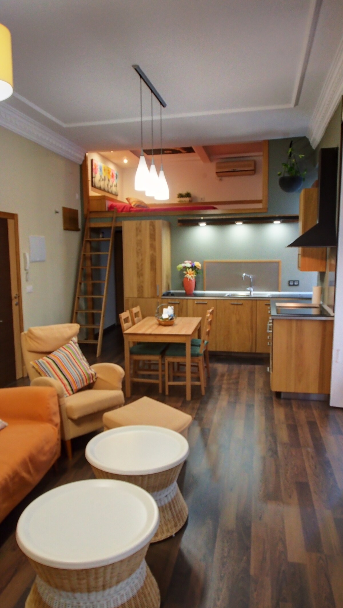 Apartamento de concepto abierto en una estancia de más de 40 m² con baño completo independiente. Un moderno loft con amplios espacios para salón, cocina y dormitorio, donde la esmerada decoración lo convierten en un espacio muy especial. -Limpieza semanal incluida en estancias de más de 7 días. A la salida del cliente en estancias inferiores. Existe servicio de limpieza extra disponible bajo petición y por un suplemento.