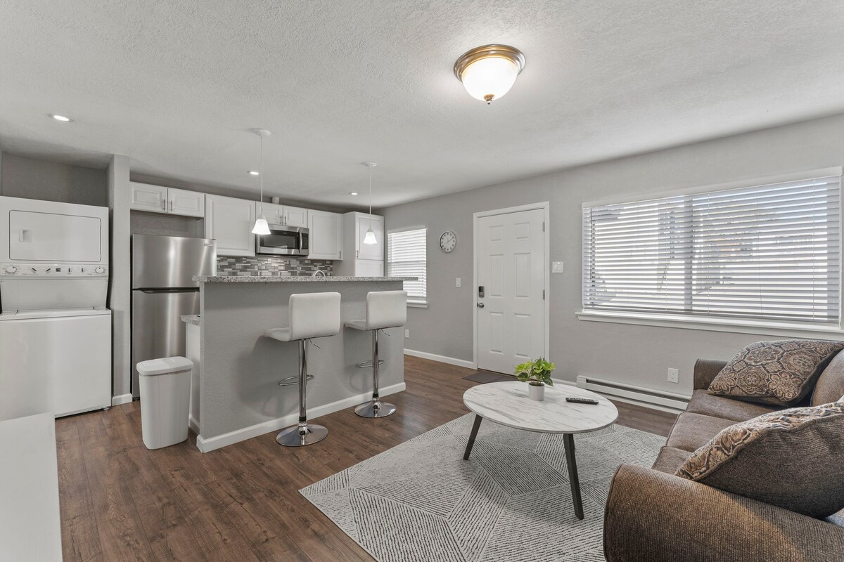 Un encantador dúplex de ladrillo de 1940, actualizado para la vida moderna en el distrito de Wells Avenue de Reno con patio, vistas a la montaña, bonito jardín y aparcamiento fuera de la calle. El pintoresco dormitorio cuenta con una cama tamaño queen, wifi, espacio de trabajo y un proyector de 80 pulgadas con pantalla HD y altavoz Bose para una experiencia cinematográfica. Hemos renovado todo el interior: nuevas tuberías, electricidad, cocina y baño. El resultado es un moderno dormitorio blanco que ofrece todo lo necesario para disfrutar de unas vacaciones relajantes en el corazón de Reno.