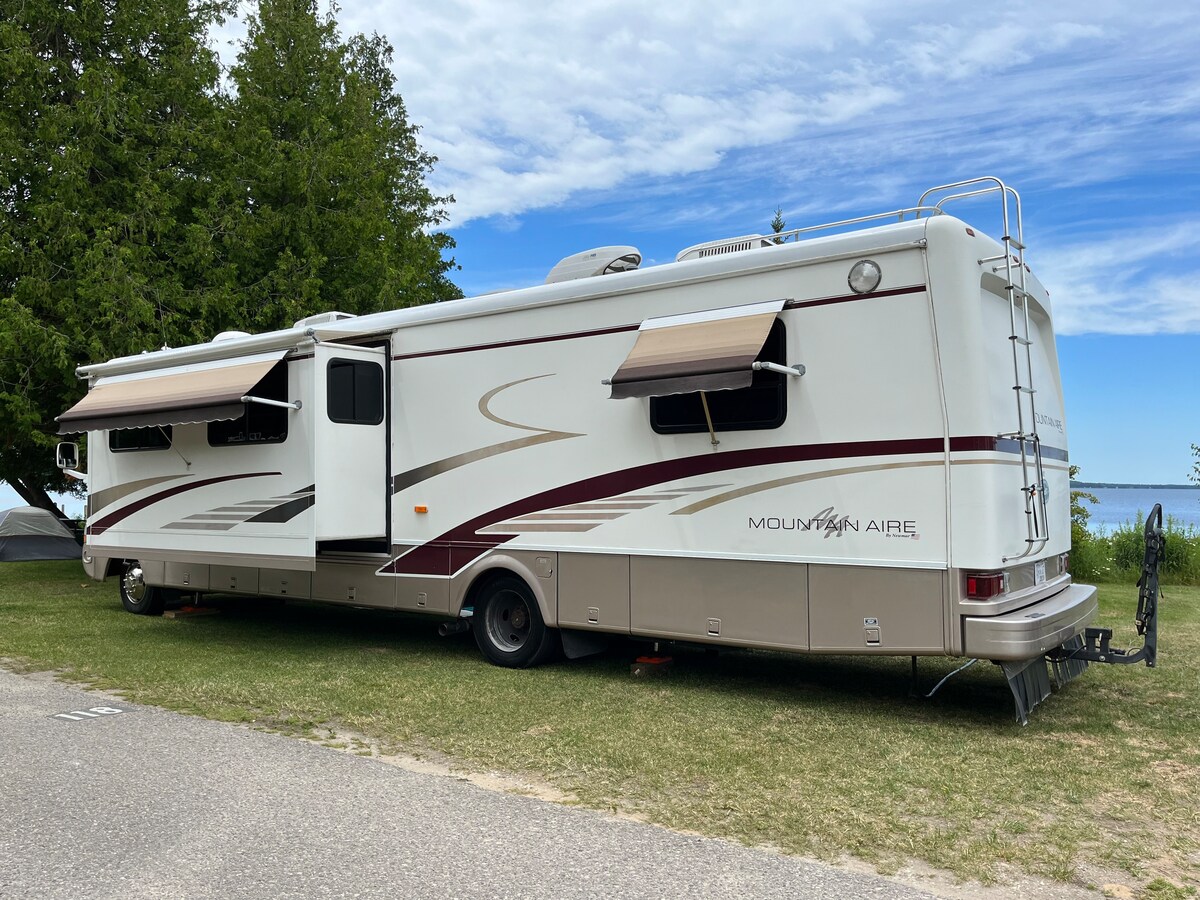 Vuelve a conectar y disfruta de un escondite privado en esta hermosa autocaravana. Podemos entregar en un radio de 25 millas de Traverse City. Ya sea que necesites un lugar para alojarte en una propiedad familiar o quieras visitar un campamento, ¡podemos acomodarnos! ¡Avísanos dónde y cuándo y lo organizaremos todo! ¡Todo lo que necesitas hacer es presentarte y relajarte! Tiendas de campaña al aire libre disponibles. Duchas interiores y al aire libre. Dormitorio principal. ¡Nevera, estufa, microondas y despensa! ¡Gran unidad de aire acondicionado!