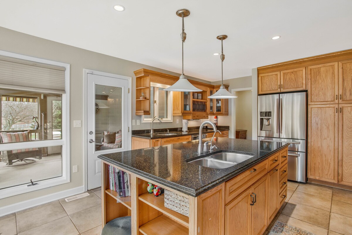 Remodelada en 2023, esta casa privada de 2 pisos llena de luz ofrece 2,100 pies cuadrados de comodidad elegante, perfecta para una escapada relajante. Disfruta de impresionantes puestas de sol desde los porches de dos pisos con vistas al río Chester, relájate junto a la hoguera, organiza un festín de cangrejos o disfruta de una barbacoa en el muelle privado. Con una ubicación ideal a solo 5-10 minutos de los mejores restaurantes y lugares para bodas de Kent Island, con un parque infantil comunitario, un pabellón y una rampa para botes a solo unos pasos. ¡Tu escapada a la fuente de agua te espera!