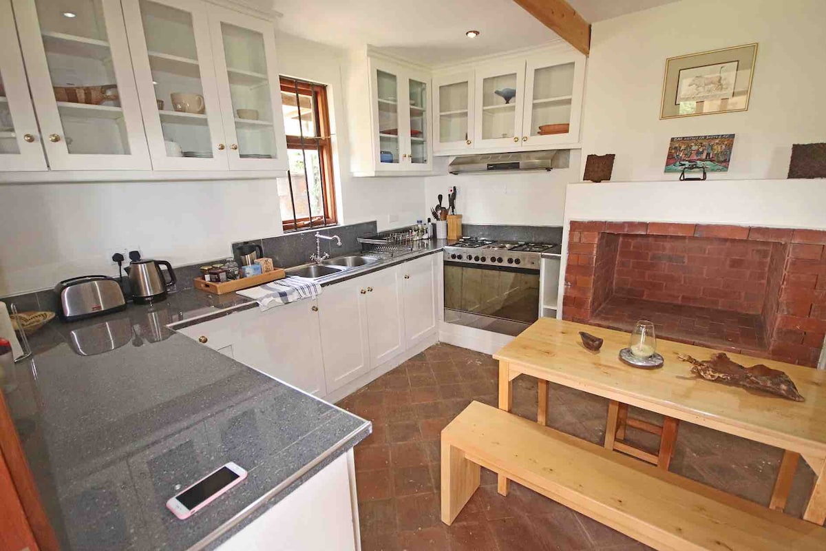 Welcome to Fuchsia Suite Ole Samara! Fuchsia has a farmhouse modern design and can be configured as two single beds or a king size bed. There are two bedside tables with lights and a desk with chair and reading lamp. Beddings are 100% cotton sheets with high thread count and a warm down duvet. It has ample closet space, covered patio and a modern bathroom .Fuchsia Suite guests have exclusive access to a large fully equipped kitchen and a large covered deck next to it with an outdoor fireplace.