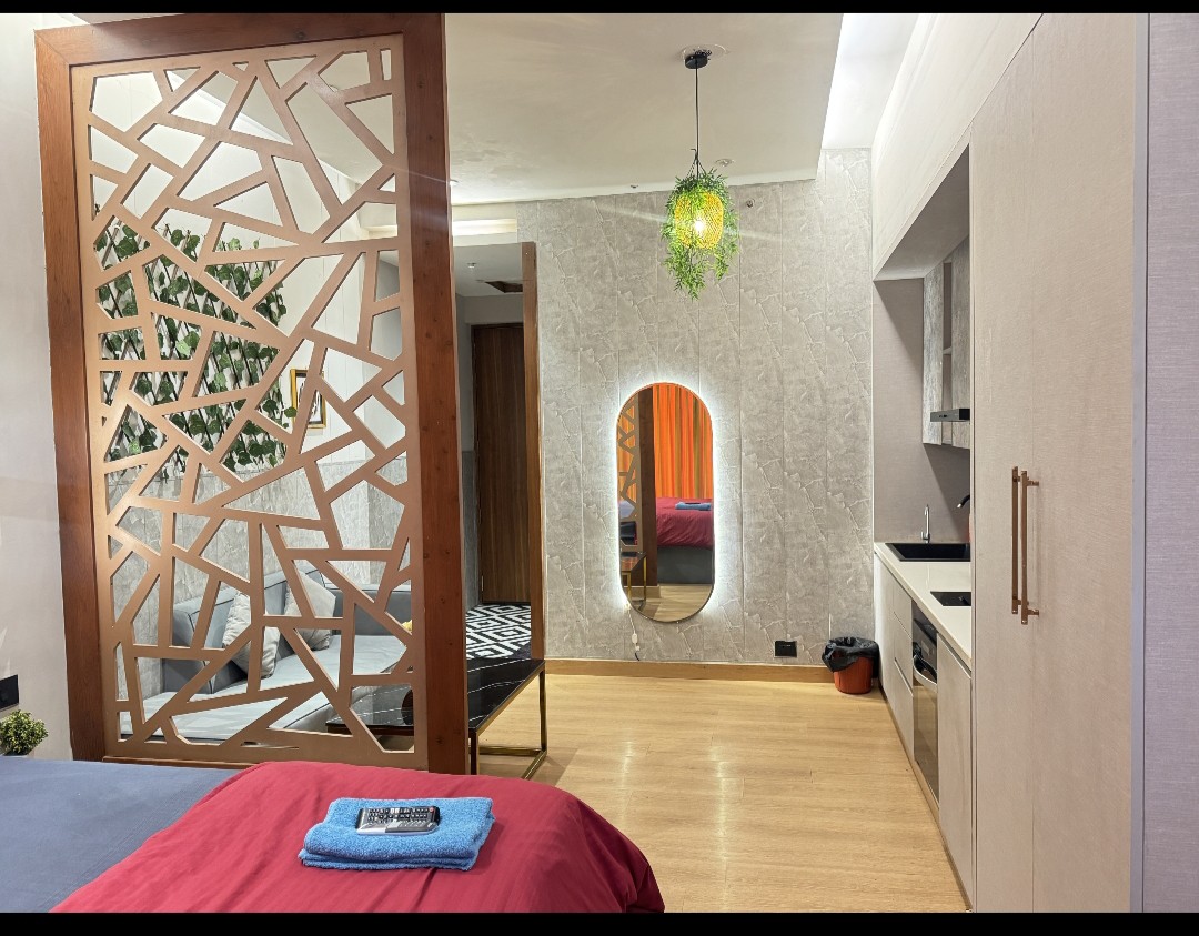 Te damos la bienvenida a Valuura Stay, tu escapada relajante de lujo bohemio dentro de Galaxy Blue Sapphire, Greater Noida. Diseñado en tonos suaves de color nude, blanco y marrón cálido, este estudio combina la comodidad de un hotel de 5 estrellas con un ambiente cálido y tranquilo en el hogar. Ideal para parejas, viajeros de negocios y cualquier persona que busque una estancia bellamente seleccionada y digna de IG. Ya sea que estés de visita por trabajo, una escapada de fin de semana, un viaje de compras o simplemente un descanso acogedor, este estudio te ofrece la combinación perfecta de lujo, comodidad y confort.