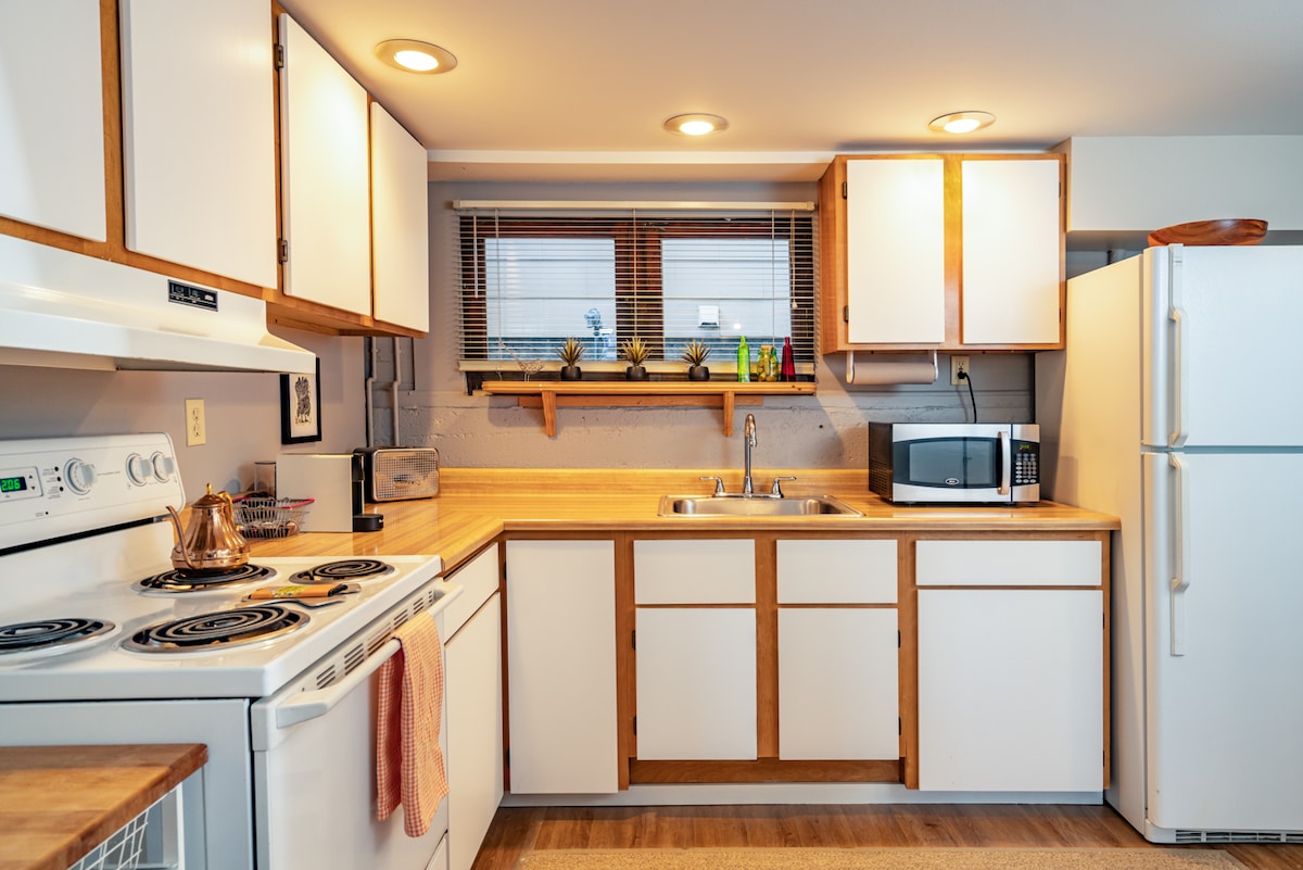 Retiro de casas pequeñas en Wallingford TLDR Capacidad para 3 personas A 20 minutos del aeropuerto SEA, de los cruceros, de los hospitales y del centro de la ciudad Área segura. Aire acondicionado Alójate en una casa de huéspedes llena de luz con vistas a un jardín privado. Cuenta con muebles de alta gama y sábanas de lujo. 🌳 El vecindario cuenta con una gran cantidad de negocios, cafeterías y restaurantes locales. 👟Puntuación para caminar: 83/100 📍 Ubicación céntrica, con fácil acceso a la Universidad de Washington, la I-5, la SR 99, el centro de la ciudad, hospitales, cruceros y el aeropuerto SEA 🥇¡Superanfitrión! Hospitalidad de primera en un barrio seguro y tranquilo