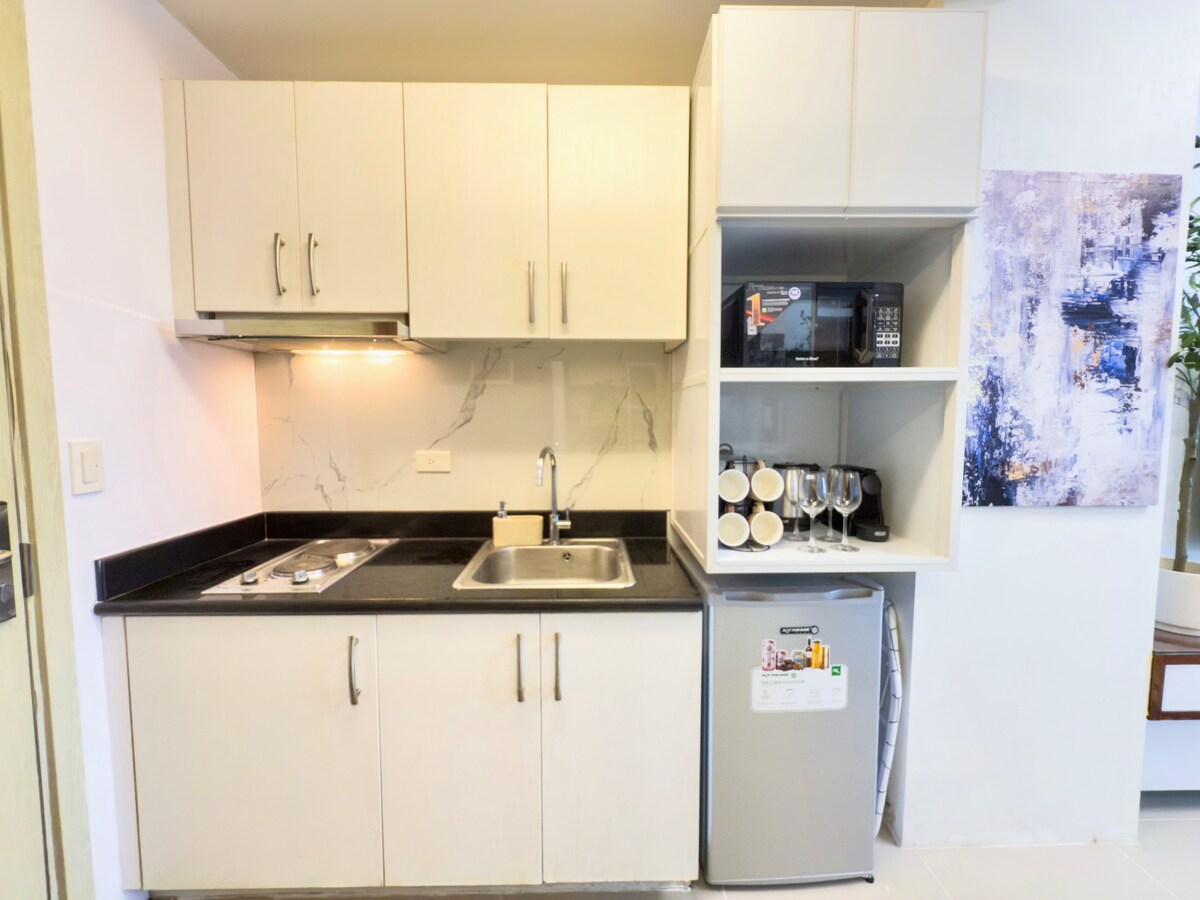 «Tu hogar lejos de casa». Un lugar perfecto para relajarse después de un largo y estresante día de trabajo. Una unidad de un dormitorio recién amueblada y acogedora con balcón en las principales 'AIR Residences' de SMDC ubicadas en el corazón de Makati. La unidad tiene la actitud, el estilo y el encanto de un espacio hogareño de estilo europeo, cómodo pero lujoso. El primer día, ofrecemos agua embotellada, café, té verde y aperitivos de cortesía. No se admiten MASCOTAS en el edificio.