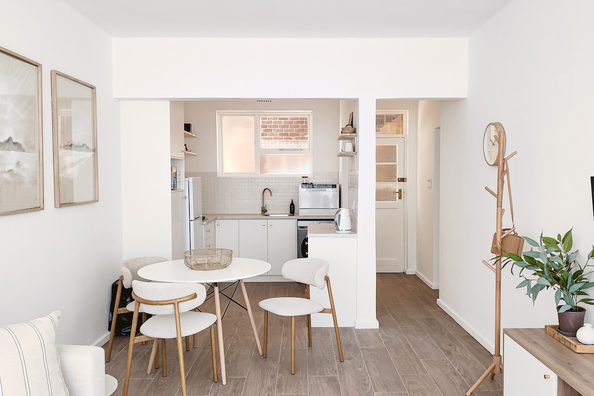 Ubicada justo al lado del bullicio de la playa, esta luminosa unidad de un dormitorio ofrece una escapada tranquila a la costa, con vistas al mar y aire marino que entra por la ventana. El espacio se siente como un sueño de Pinterest: ligero, playero y relajado, sin dejar de sentirse como en casa. Pasa las mañanas con café en el rincón de lectura iluminado por el sol, las tardes en la playa a solo un paseo de distancia o acomódate cómodamente para el trabajo remoto. Perfecto para estancias cortas o largas, escapadas románticas o para cualquiera que busque un lugar tranquilo y elegante junto al mar.