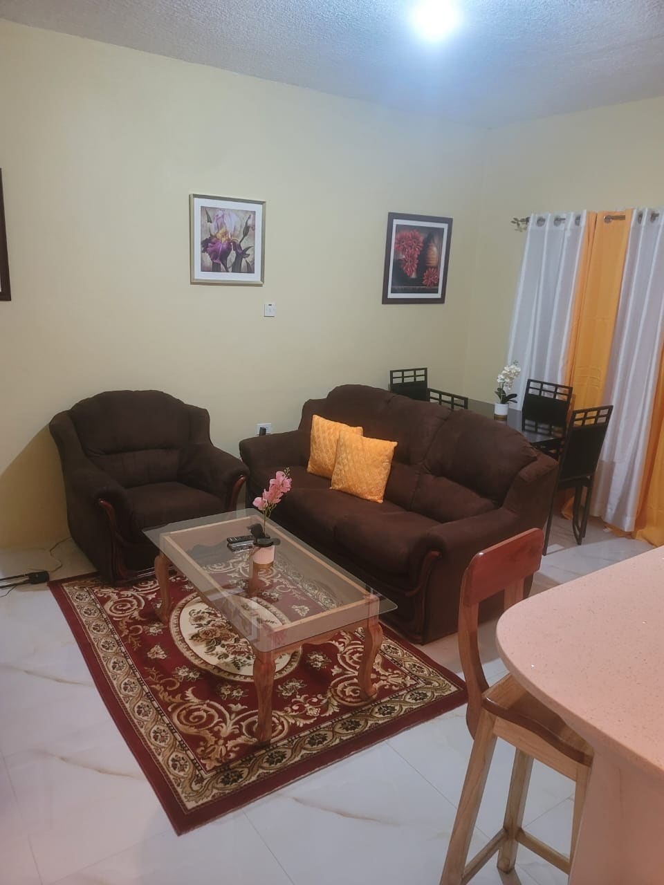 "Terres Bungalow at Palm View Estate" es la escapada perfecta al paraíso, ofreciéndote una experiencia de vacaciones relajada y tranquila en la privacidad de tu propio apartamento de 2 dormitorios y 1 baño. Está ubicado cerca de la playa en Mammee Bay, a 7 minutos de la ciudad turística de Ocho Ríos. El apartamento ofrece comodidades modernas para que tengas unas vacaciones relajantes y cómodas. Siéntete como en casa en esta comunidad cerrada de 24 horas, a 5 minutos de restaurantes, bares, un supermercado y tiendas convenientes.