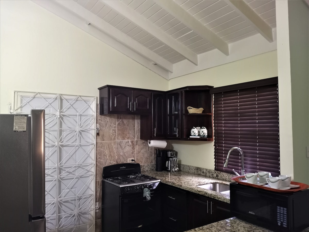 Entra en tu paraíso personal ubicado cerca del corazón de Ocho Ríos, St. Ann, Jamaica. Tenemos una casa adosada de 2 dormitorios y 3 baños que alojará cómodamente a 6 huéspedes con un estilo relajado y sencillo. Las unidades de aire acondicionado están equipadas con sensores de ahorro de energía que apagan la unidad si las ventanas/puertas están abiertas y si no se detecta movimiento. La unidad de aire acondicionado permanece encendida durante la noche, las puertas/ventanas deben estar cerradas. Una cocina completa equipada con platos y cubiertos y una cafetera.