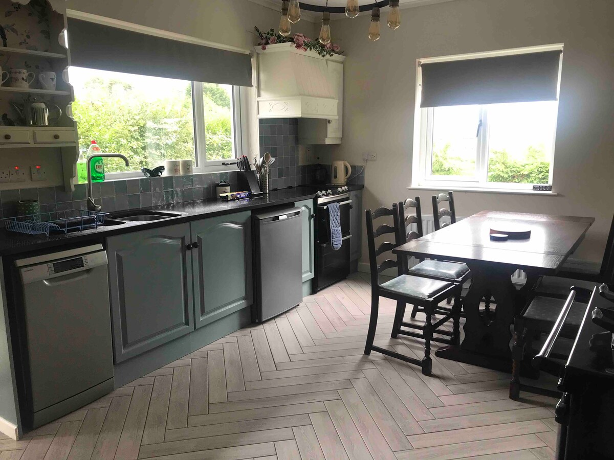 Swallows Haven es una hermosa y pintoresca casa de campo de 2 dormitorios con sofá cama en la sala de estar. Cocina/comedor y sala de estar de planta abierta con chimenea. Cocina moderna con vitrocerámica eléctrica, horno con ventilador, hervidor de agua, tostadora, microondas y una amplia gama de utensilios de cocina para preparar comidas. Isla grande con barra de desayuno y taburetes. Lavadero con lavadora y secadora, espacio de almacenamiento. Baño luminoso con ducha sobre bañera. 2 dormitorios, camas dobles con ropa de cama de lujo, armario, cajones y taquillas.