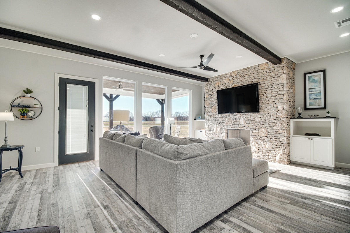 Escapada romántica o divertida estancia de pesca. Casa de campo de lujo de nueva construcción, bellamente diseñada, cuenta con una cocina totalmente equipada, una acogedora chimenea y wifi. El baño tiene ducha a ras de suelo y lavadora/secadora. Dormitorio con cama tamaño queen, sala de estar con sofá cama y silla, capacidad para 5 personas en total. Tiene garaje para 2 coches con JACUZZI y un largo camino de entrada para aparcar barcos. A pocos kilómetros del centro de Grove y de la rampa pública para botes. Este entorno tranquilo en una carretera pavimentada es lo mejor del campo y está cerca de la ciudad.