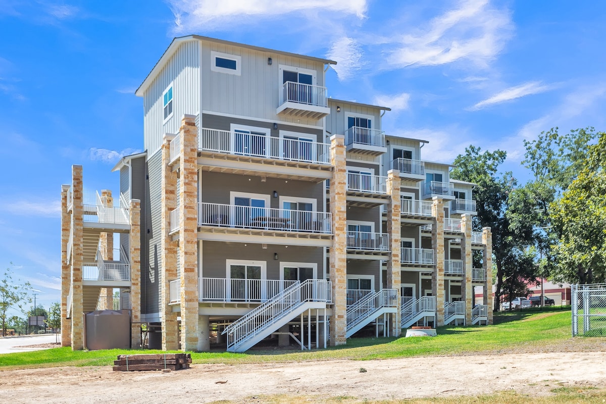 Ubicado en el histórico Gruene Texas con impresionantes vistas al río Guadalupe desde tu balcón privado. Este espacioso apartamento de tres dormitorios tiene todo lo que necesitas para sentirte como en casa con internet de alta velocidad, TV por cable, lavadora y secadora. Ubicado en el borde del río Guadalupe, puedes disfrutar de acceso directo al río, relajarte junto a la piscina con cascada o dar un paseo para disfrutar de todas las tiendas, restaurantes, bares y vida nocturna que el histórico Gruene tiene para ofrecer. ¡Estamos deseando recibirte!