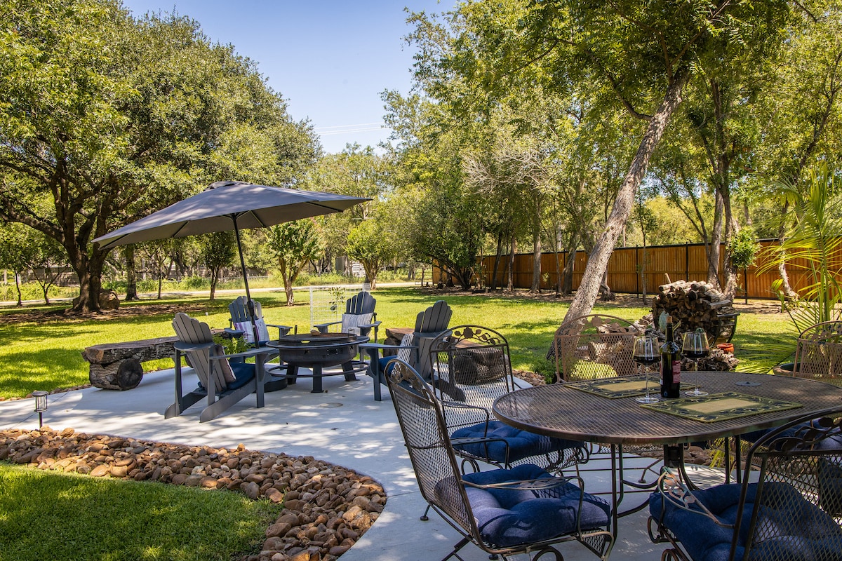 Secluded Backyard, Outdoor Fireplace & Swing Bench