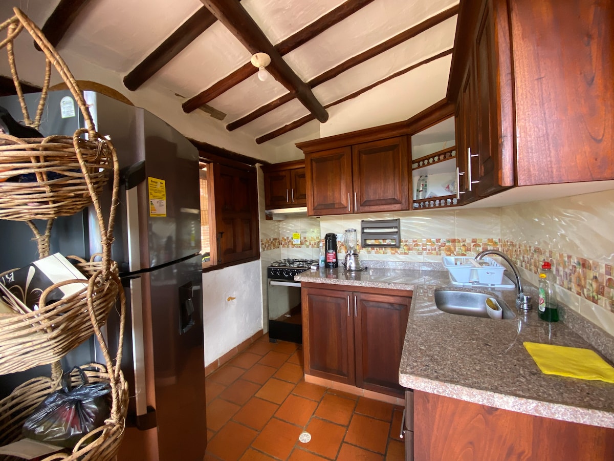 ¡Hermosa mini casa con todo! Está ubicada en un lugar mágico, rodeada de un bosque nativo, donde podrás conectarte con la naturaleza y recargarte de energía. Es una casa mínima, tiene 24m2 interiores y 9m2 de exteriores, pero cuenta con todas las comodidades necesarias: cocina, nevera, comedor, sala, escritorio y sillas ergonómicas para 2 personas, baño, ducha con agua caliente, lavadorora, lavadero, altillo / habitación, armarios, terraza, tina / bañera, asador, BBQ, chimenea y balcón.