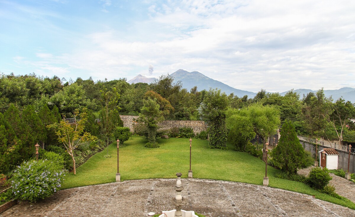 A Hidden Oasis 4 blocks from the Central Park. There's no place like this in Antigua. You may not want to leave! Sleeps 4. Fully equipped & comes with 1 secure parking space & very large TV screen. Best WiFi in Antigua. You'll be living in a lush & expansive garden with a view of the Volcano Agua that can't be beat. 6 other Casitas share this beautiful setting.