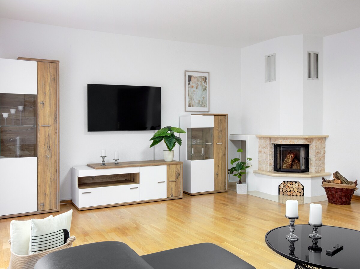 Apartamento panorámico de 60 m², para un máximo de 4 huéspedes • Cama tamaño king, sofá cama, cama plegable (a pedido), cuna para bebés. • Cocina totalmente equipada: estufa, horno, tetera, cafetera, lavavajillas, nevera, TV. • Sábanas, toallas, café y té de alta calidad. • Amplia terraza con tumbona, vista a la naturaleza. Ubicación fantástica: • A 5 minutos en auto/a 30 minutos a pie del centro de Idstein. • Las rutas de senderismo comienzan en la puerta. • A 20 minutos del aeropuerto de Frankfurt y Wiesbaden. • A 2 km de la autopista. • Parque infantil cercano y restaurante de parrilla superior.
