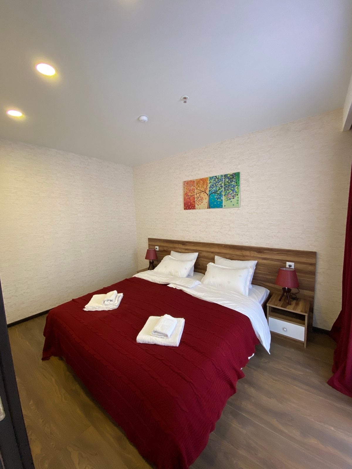 La habitación se encuentra en el Gudauri Hotel Loft, un hotel elegante y moderno en Gudauri. Los huéspedes pueden disfrutar de piscina, jacuzzi y sauna (con costo adicional de 120 GEL). El hotel cuenta con dos restaurantes y recepción 24 horas. La habitación tiene 25 metros cuadrados, tiene dos camas individuales, un sofá cama y puede alojar hasta 4 personas. La habitación tiene TV y cocina equipada. La ubicación es especialmente adecuada para los amantes del esquí, ya que se encuentra junto a la pista de esquí, tiene acceso a la puerta de esquí y espacio de almacenamiento de esquís.