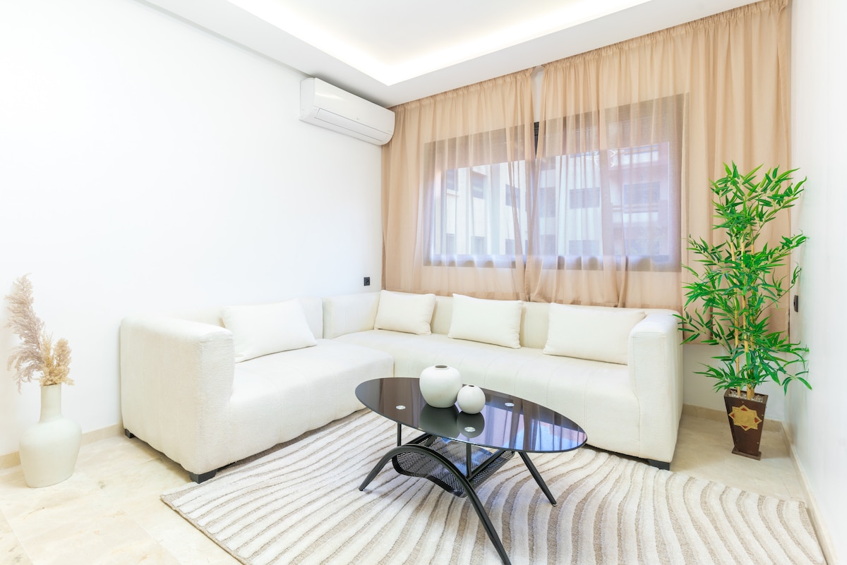 🌟 ¡Bienvenidos a Marrakech! Alójese en nuestro apartamento de lujo con una ubicación ideal en Gueliz, al lado de la estación de tren 🚉 y cerca de los imprescindibles: • Jamaâ El Fna 🕌 (10 min) • Jardín Majorelle 🌿 (7 min) • M Avenue 🛍️ (2 min) • Menara Mall 🛒 (5 min) 🛏️ Disfrute de una cómoda habitación, una moderna sala de estar con TV inteligente📺, una cocina equipada 🍳 y un acogedor balcón perfecto para leer o relajarse 📖☕. ✨ ubicación ideal para una estadía inolvidable en el corazón de la ciudad roja