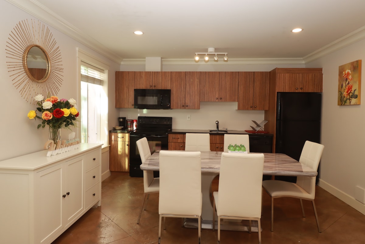 Bienvenido a nuestro hermoso lugar privado a nivel del suelo cerca del puente Port Mann para un acceso rápido a la autopista 1 y a solo 30 minutos en auto de Vancouver. Con una entrada privada y estacionamiento designado para huéspedes, tu comodidad es nuestra prioridad. En el interior, descubrirás dos acogedoras habitaciones con camas tamaño queen, una amplia sala de estar, mesa de comedor y lavandería en suite. No te pierdas las impresionantes vistas del río Pitt y los jardines de la granja Colony. ¡Reserva tu estancia con nosotros hoy mismo!