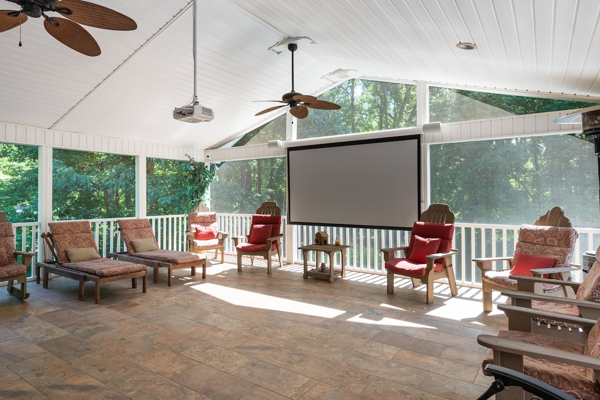 Escondido en la tranquila comunidad PGA de Sedgefield de Greensboro, The Cave es una suite de invitados de 2 dormitorios y 1 baño junto a la piscina diseñada para la relajación y la comodidad. Esta serena escapada para adultos cuenta con lujosas comodidades que incluyen el uso exclusivo de nuestra piscina privada de temporada (verano), teatros interiores y exteriores, mesa de billar Brunswick, bar/cocina pequeña y más. Disfruta de un servicio personalizado y una ubicación privilegiada, a pocos minutos de los mejores restaurantes, tiendas, campos de golf, lugares de entretenimiento, estadios deportivos y universidades.