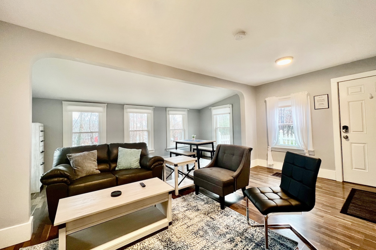 Desconecta de la rutina en este alojamiento único y relajante. Esta casa de campo de un dormitorio ofrece increíbles vistas al río Ohio. Siéntate y relájate en la hermosa terraza trasera mientras disfrutas viendo pasar las barcazas. También puedes ver la parte superior de la presa y las esclusas de Pike Island, ¡así que no olvides tus prismáticos! La cocina está totalmente equipada con los artículos necesarios. Tiene capacidad para alojar cómodamente hasta 2 personas (1 cama tamaño queen). Perfecta para una pareja (o una familia pequeña) que visita a la familia en el área de los tres estados.