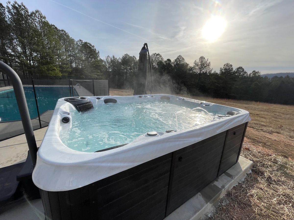 ¡Granja de lujo en 15 acres privados! • NUEVA CONSTRUCCIÓN • PISCINA DE TAMAÑO COMPLETO • 6 DORMITORIOS Y 6 BAÑOS • CAPACIDAD PARA 12+ (camas adicionales disponibles bajo petición) • CERCA DE LUGARES PARA BODAS • ¡EL CENTRO DE TENIS DE ROMA está a pocos kilómetros en auto! • CERCA DE PESCA/GOLF (fuera del sitio) • JACUZZI GRANDE • SAUNA INTERIOR • FOGATA • PARRILLA DE GAS • ¡SE ADMITEN MASCOTAS! • Accesible para SILLA DE RUEDAS • Cocina bien surtida y 2 refrigeradores • Porche grande envolvente • Wifi rápido • Cerca de parques estatales. • Ideal para trabajadores remotos • ¡Cerca de Atlanta/Chattanooga!