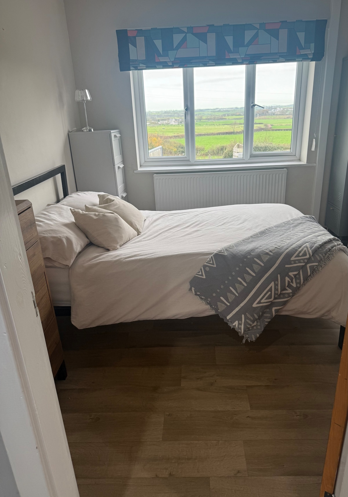 Comfortable studio style room for 2 people located on the ground floor of our family farmhouse. Conveniently situated 3 minutes from junction 5, A55 expressway. Great location for exploring nearby seaside village of Rhosneigr and surrounding beautiful beaches. On route for visiting Anglesey Circuit. The studio has a very comfortable super king size bed that can be separated into two single beds .(Please advice of your requirements). Shower room with underfloor heating.