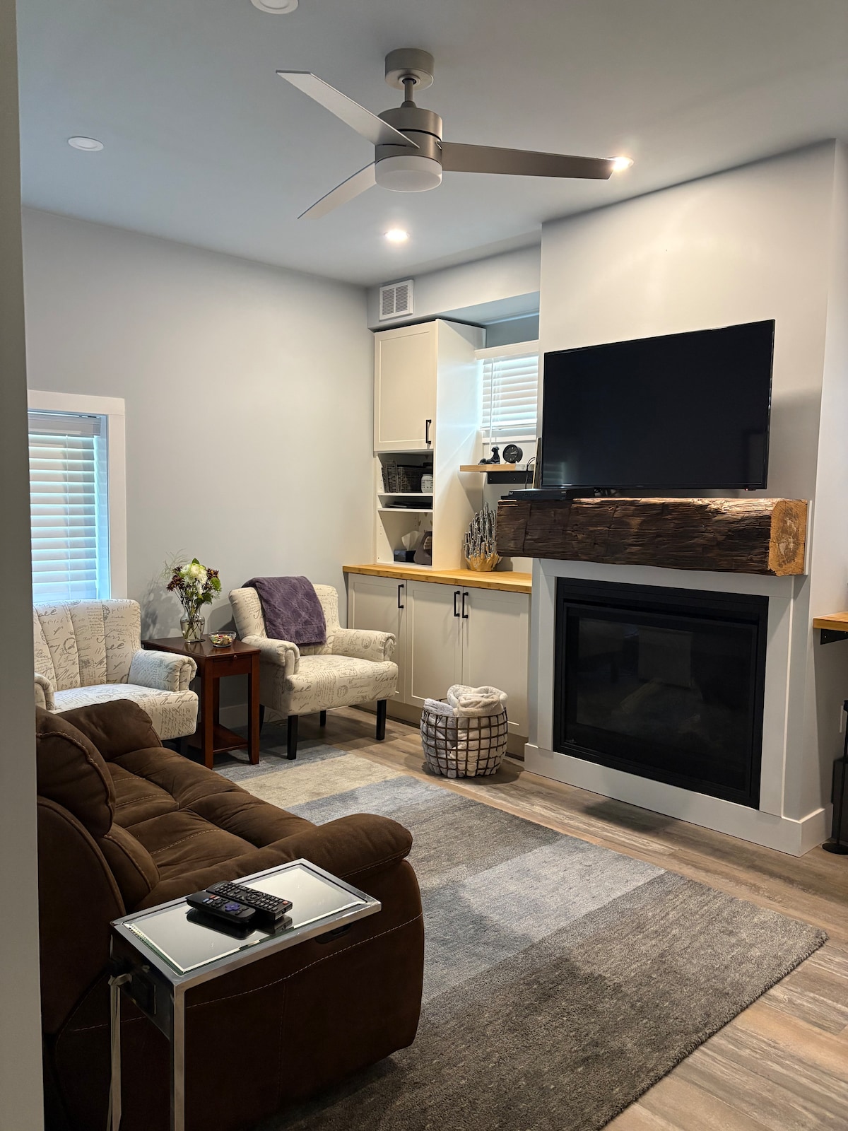 Bienvenido a Deerwood, nuestro apartamento de soltero bellamente decorado/suite de invitados en nuestro lote de acres de bosque adjunto a nuestra casa. La ventana alta, el techo abovedado de pino y los detalles en madera seguramente te proporcionarán la experiencia de las Tierras Altas. Hay una entrada privada, cocina completa, baño, cama tamaño king, cama tamaño queen, centro de lavandería, sala de estar, TV, internet, chimenea de gas, aire acondicionado, terraza privada y amplio estacionamiento. Todo esto se encuentra a solo 4 minutos en coche de Haliburton Village. Gail y Peter