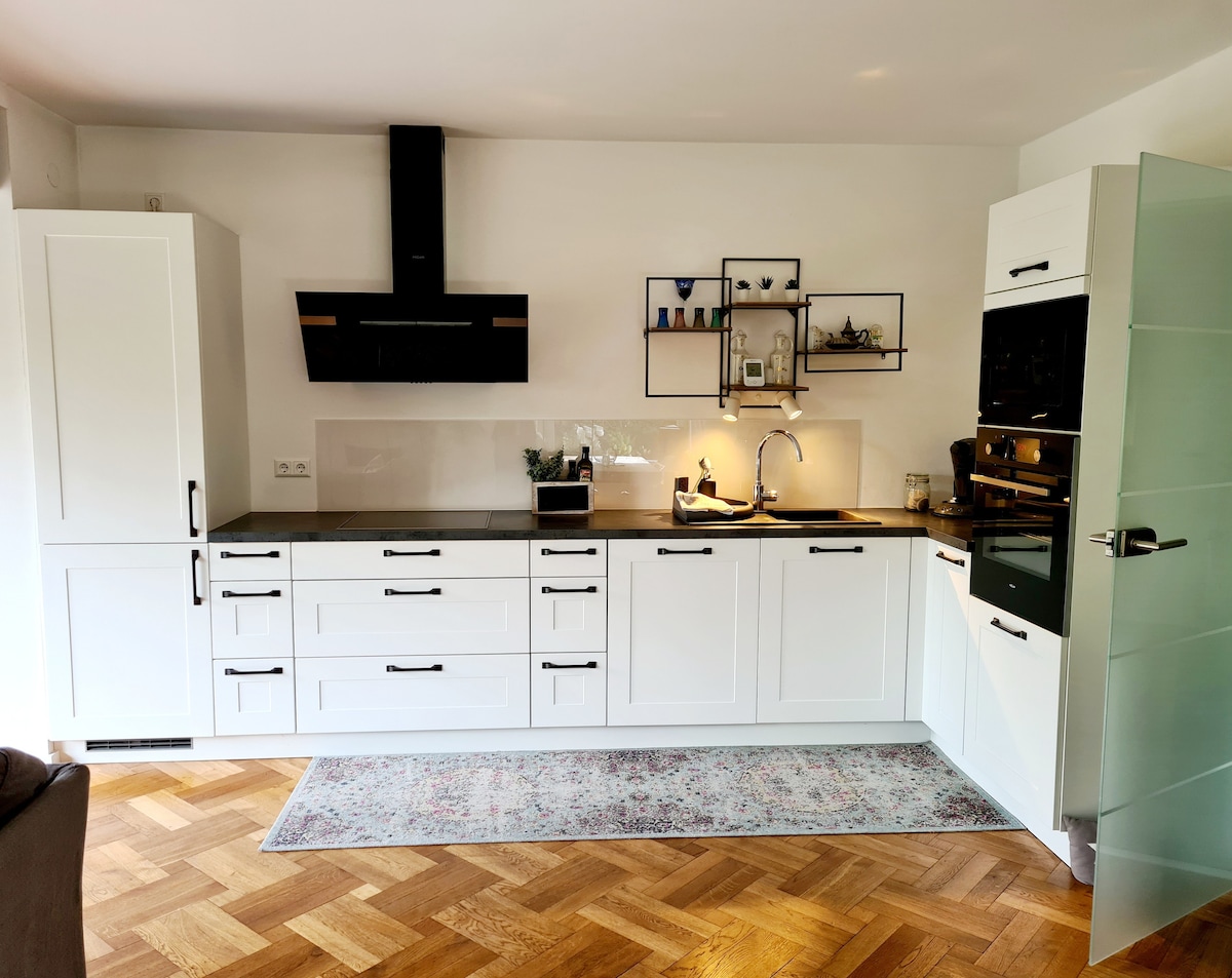 Loft elegante con terraza en el centro El loft se terminó en la primavera de 2019. Se encuentra en una zona de tráfico reducido y, sin embargo, es muy céntrico. El loft ha sido amueblado con mucha atención al detalle y ofrece un agradable ambiente de bienestar. Ubicación: 6 minutos en coche del centro de la ciudad Autopista - 5 minutos 6 minutos en S-Bahn hasta el centro de la ciudad/estación central, la parada está a 5 minutos a pie A 3 minutos a pie del supermercado