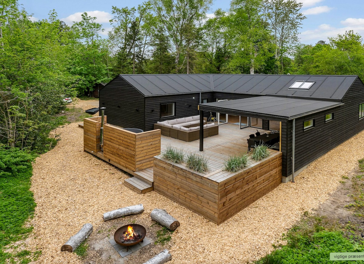Estimado huésped, lee la descripción completa antes de reservar. 😊 No hay barbacoa. Relájate en este espacio tranquilo y elegante. En el idílico Asserbo, rodeado de bosque y cerca de la playa de Liseleje, alquilamos nuestra casa de campo. Hay tres dormitorios y puedes hacer la cama en la alcoba de la sala de estar y en el sofá de la sala de estar. El baño silvestre se puede utilizar libremente y hay una fogata, trampolín, tobogán, ducha al aire libre con agua caliente y mucho más. De nada. Debes traer tu propia ropa de cama y toallas.