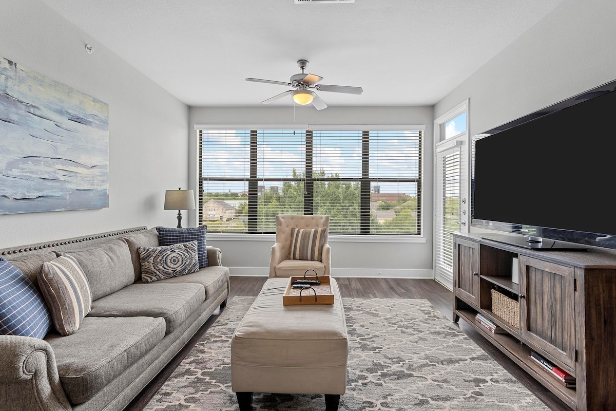 Relájate en este elegante apartamento de 1 dormitorio cerca del distrito de Bishop Arts y del centro de Dallas. La ciudad está repleta de restaurantes, bares, centros comerciales, monumentos históricos y atracciones galardonados. Aventúrate por la región de Dallas fácilmente desde esta ubicación privilegiada. Una vez que estés listo para relajarte, retírate a este cómodo apartamento. Cocina ✔ Totalmente Equipada ✔ Cómodo 1 dormitorio con cama tamaño queen. ✔ Dos televisores inteligentes 4k UHD de 55 pulgadas Espacio de trabajo de✔ oficina. Wifi de✔ alta velocidad. Aparcamiento cubierto reservado✔ gratuito. ¡Más información a continuación!