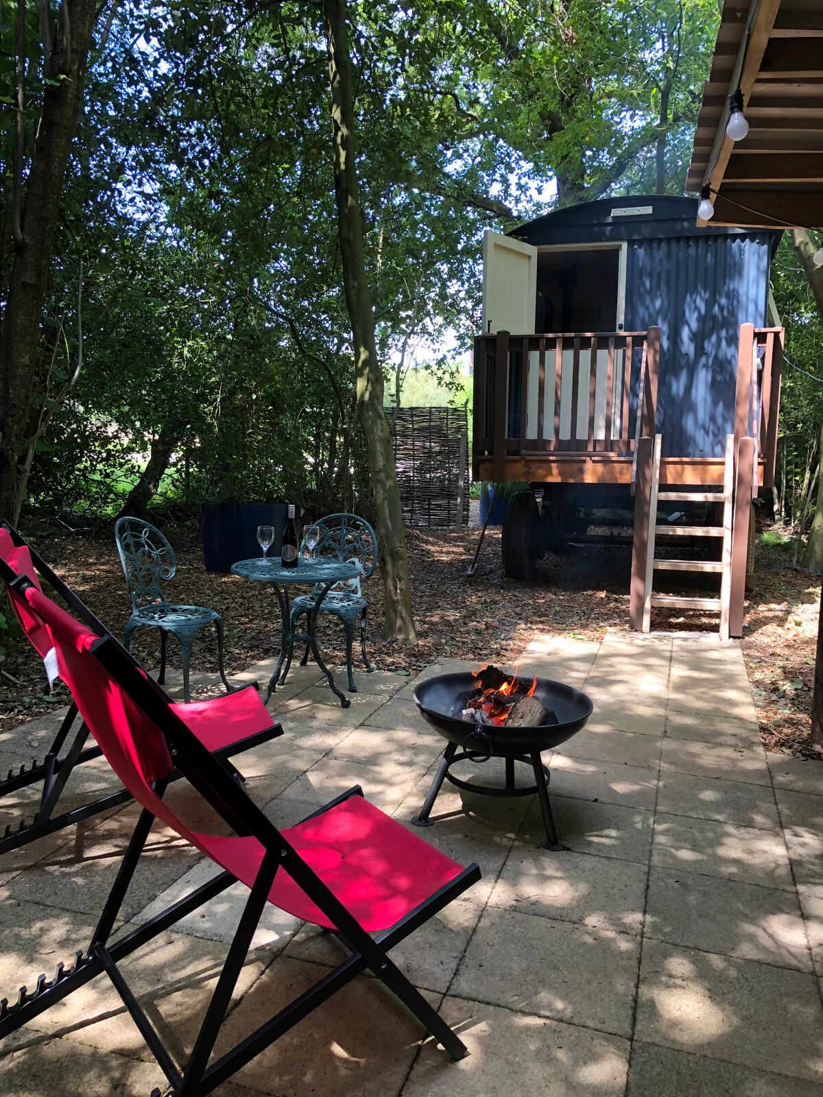 Ubicado en un claro del bosque en una pequeña granja cerca de Wimborne, ofrece la tranquilidad de estar en la naturaleza. Cama doble con una pequeña cama individual adicional disponible para niños pequeños y una cocina equipada. La peculiar ducha exterior y el inodoro proporcionarán una vuelta a lo básico, una estancia memorable. El comedor exterior, el fogón, los troncos ilimitados y la iluminación suave crean un ambiente tranquilo. Paseos por el bosque, 3 pubs a poca distancia a pie, una búsqueda del tesoro, bicicletas y zona de picnic proporcionarán entretenimiento.