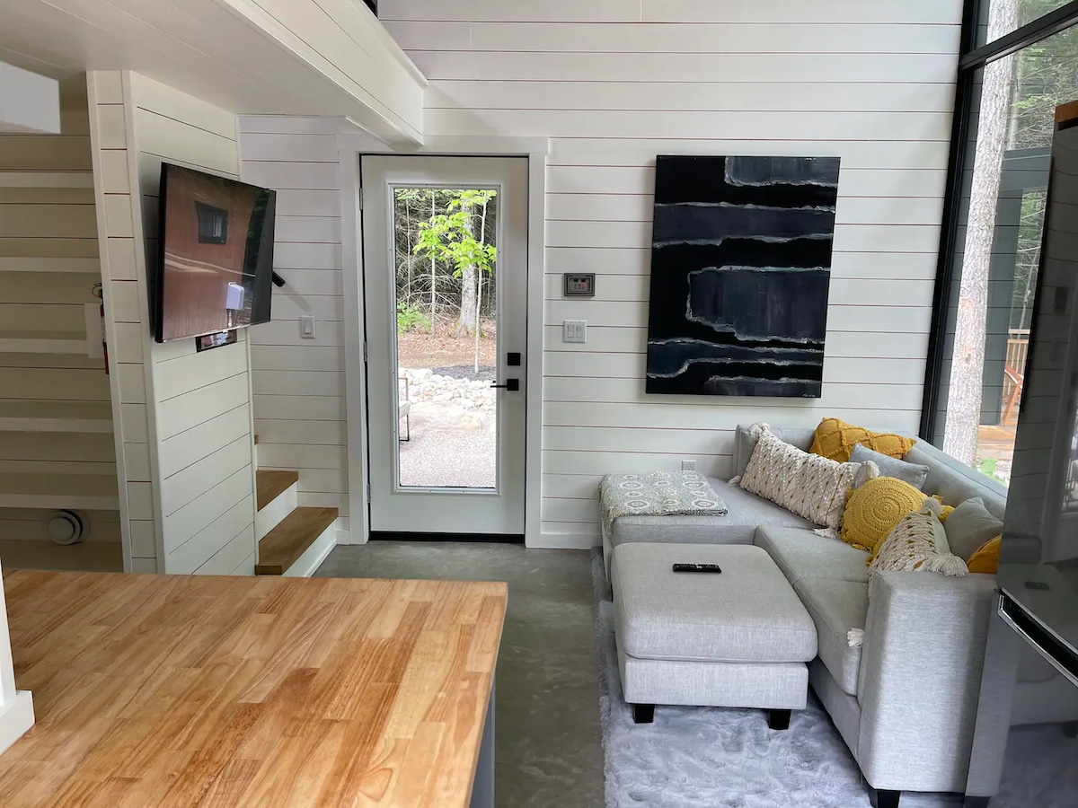 Un refugio de cabaña de inspiración escandinava que fomenta la relajación y la reconexión. Un lugar para que dejes de lado las tareas pendientes de la vida y experimentes una vida consciente y decidida. Situada tranquilamente en 2 acres de pinos rojos y blancos maduros, las amplias ventanas crean un espacio aireado y lleno de luz donde te sientes inmerso en la naturaleza que te rodea.