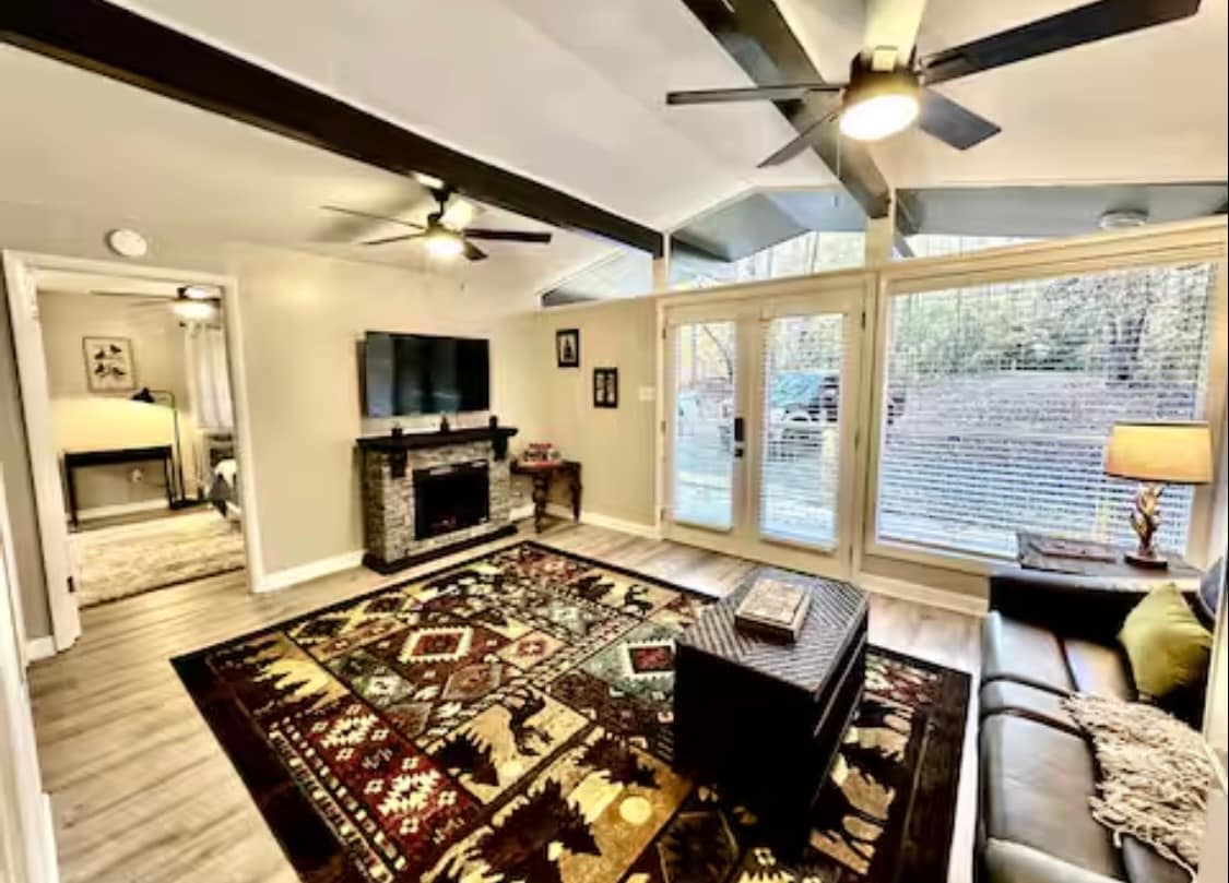 Escape to Southern Serenity, a cozy pet-friendly cabin in Warm Springs, GA near F. D. Roosevelt State Park and Callaway Gardens. Sleeps 7 with a king bed, queen bed, bunk (full & twin), and 2 full baths. Enjoy porch swings, a spacious back deck, fenced yard, firepit, fireplace, grill, and fully-equipped kitchen, with a KEURIG. Fiber internet, wifi, and streaming TV's keep you connected. Perfect for family getaways, fall festivals, or a peaceful mountain escape to relax, recharge, and reconnect.