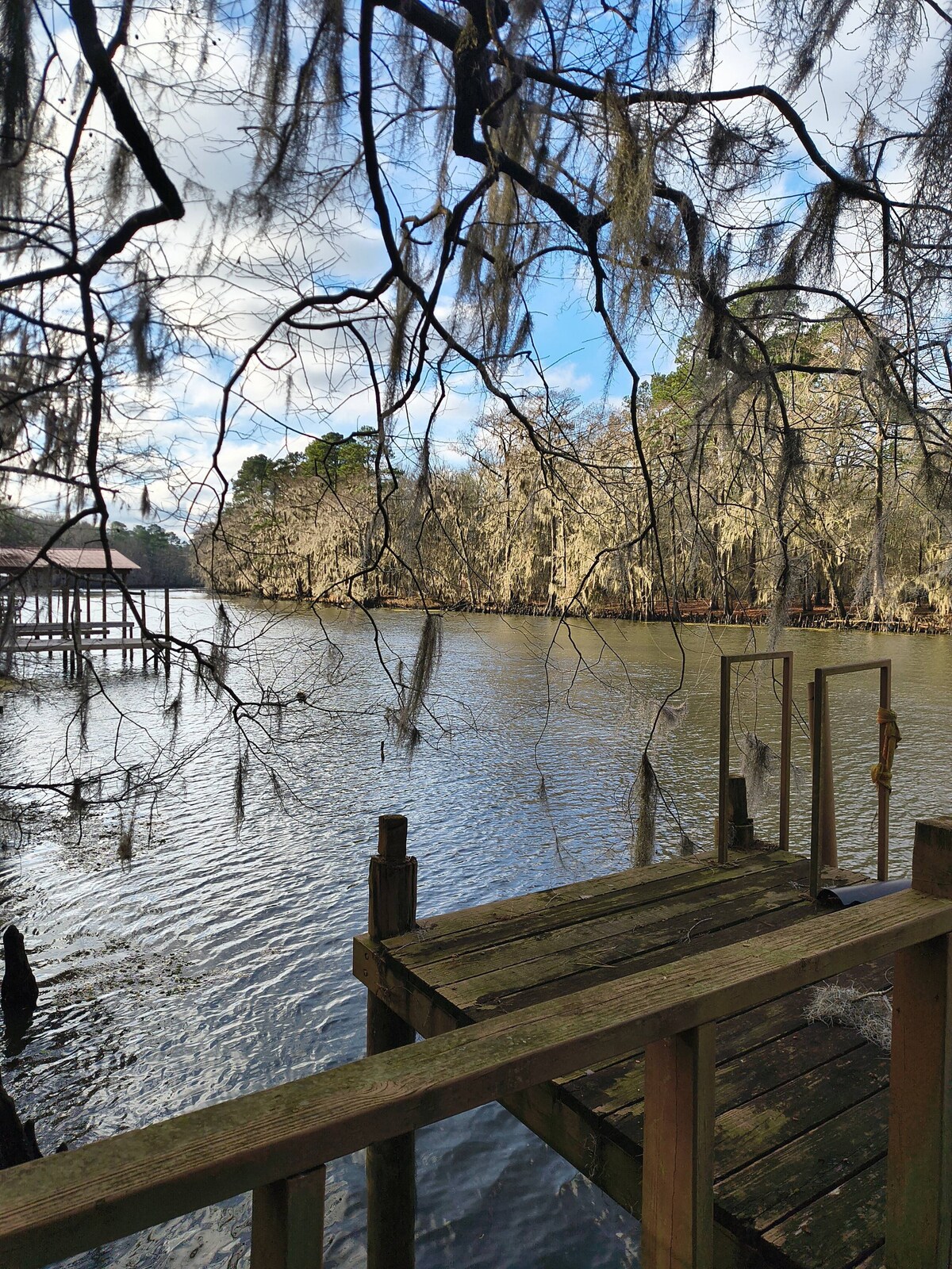 Escápate una semana o un fin de semana al mundialmente famoso lago Caddo. Rodeada por el bosque de cipreses más grande del mundo y designada como humedal de importancia internacional, nuestra propiedad más reciente acomodará a una pareja o una familia de cuatro personas con facilidad y comodidad. El alojamiento incluye cocina completa, wifi, cama tamaño king y dos dormitorios tipo loft y acceso al agua al otro lado de la calle. Si escapar a uno de los últimos tesoros salvajes escondidos de Texas suena emocionante, te invitamos a explorar y alojarte con nosotros.