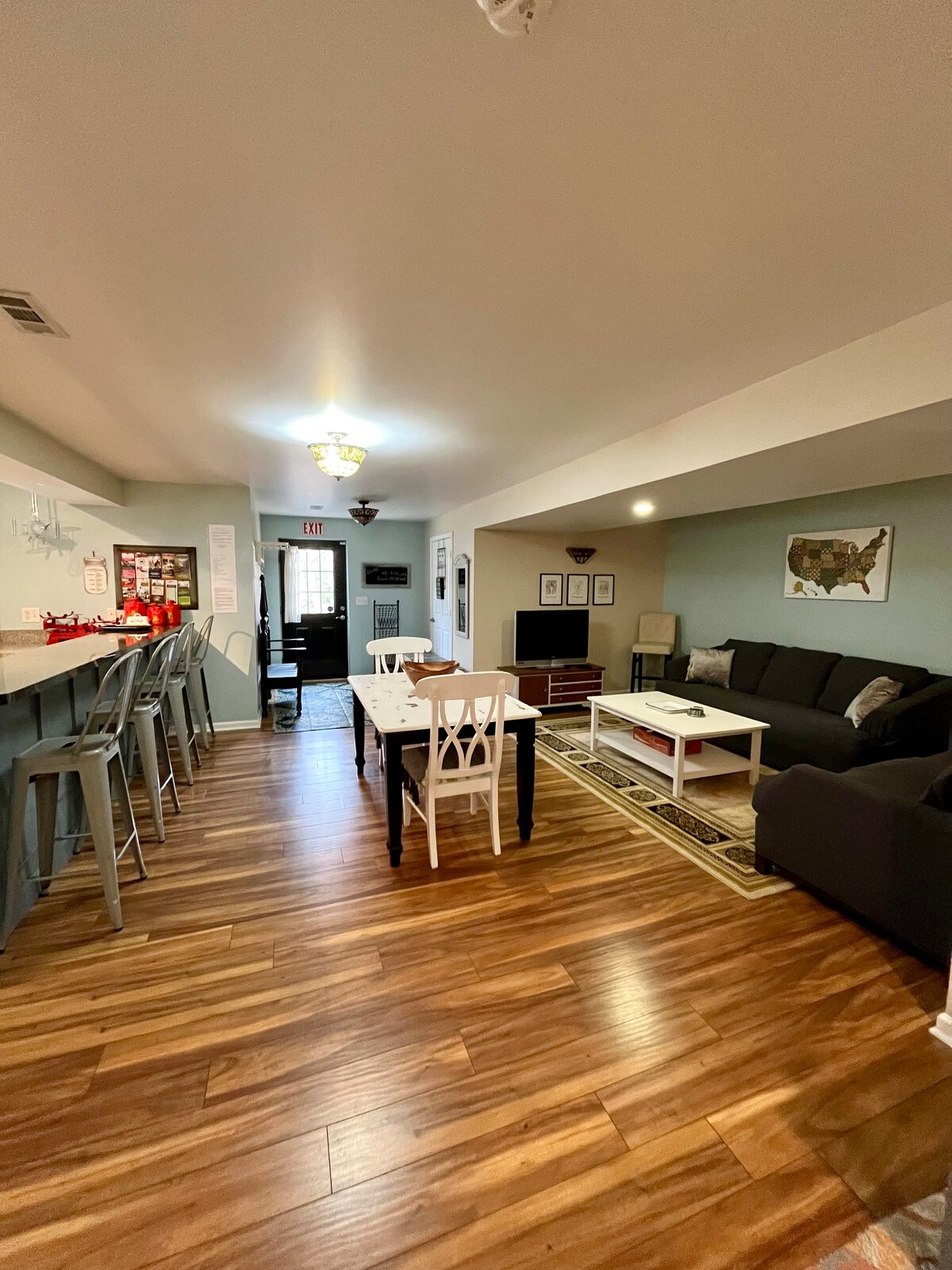 “Stay Awhile” is a spacious walk out basement apartment in our home, very clean, in a quiet neighborhood minutes from Old Town Fredericksburg, University of Mary Washington, Fredericksburg Convention Center, FredNats baseball stadium, restaurants, shopping, historical sights, battlefields & Heritage Trail along the Rappahannock River. We have a walk/run/bike trail in our neighborhood and a tandem bike you may borrow. Enjoy our 82” TV and WIFI. We are 1 hr from DC & Richmond