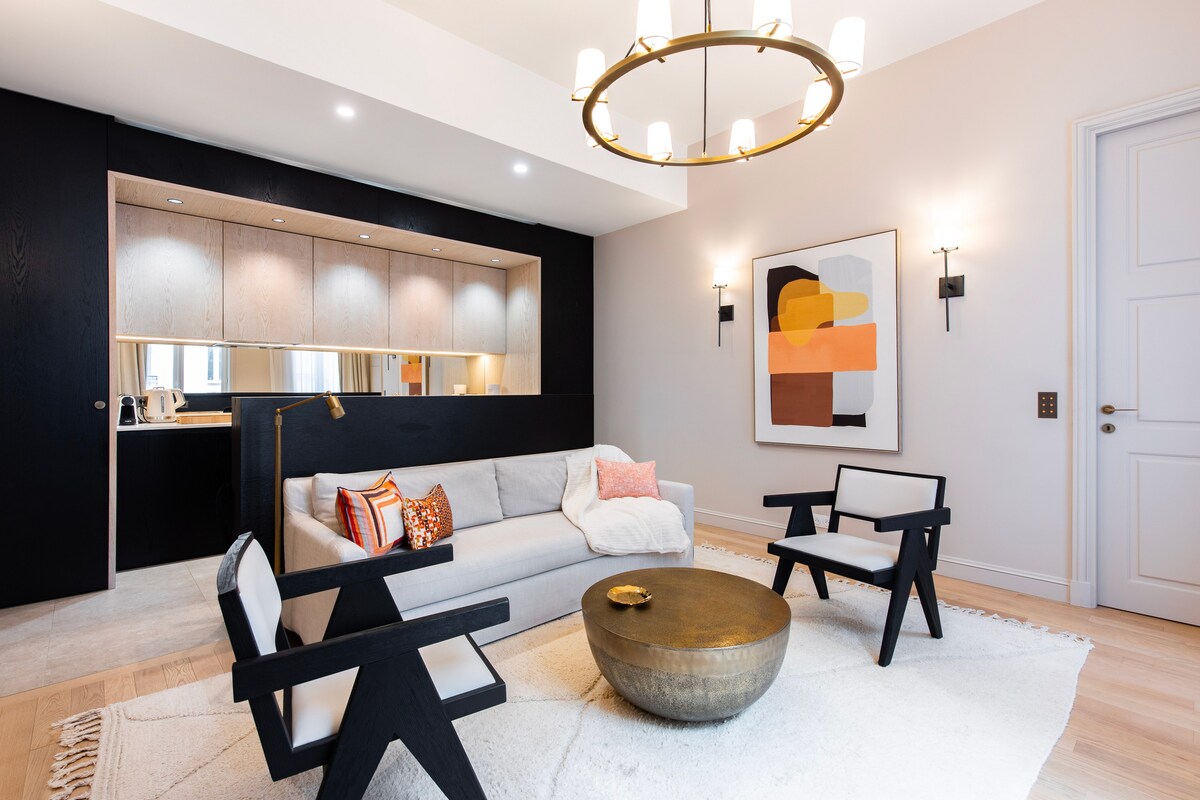 Immerse yourself in the heart of Paris' Triangle d'Or in our luxury Blackdoor residence. Discover our 1-bedroom flat, a haven of elegance, calm and comfort. With a Fully equipped kitchen, a spacious living room and a bedroom with en-suite bathroom. Enjoy the services of a 5-star hotel, including 24/7 concierge service, daily maid service, luxury bedding, gym, spa with swimming pool, sauna, hammam and massage rooms.