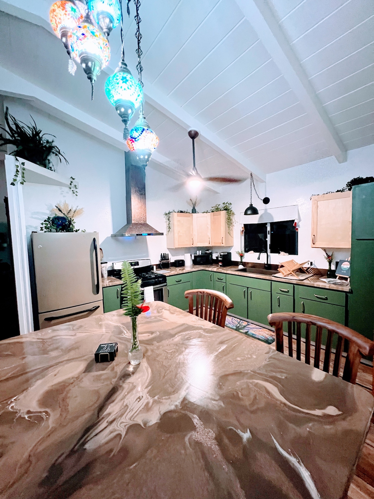 Descubre el Viejo Hawái como era antes: tranquilo, salvaje y maravilloso. Nuestro refugio en el este de Hawái es una verdadera aventura rural: fuera de la red, sin televisión, solo canto de pájaros, vientos alisios y aislamiento profundo en la exuberante selva. Espera comodidades sencillas, noches estrelladas y senderos para explorar. Nota: Hawái es tropical; a pesar de la limpieza regular y el control de plagas, pueden aparecer insectos, especialmente con las puertas abiertas o las luces encendidas. Al reservar, reconoces esto; no hay reembolsos ni cancelaciones debido a insectos, en el interior o en el exterior.