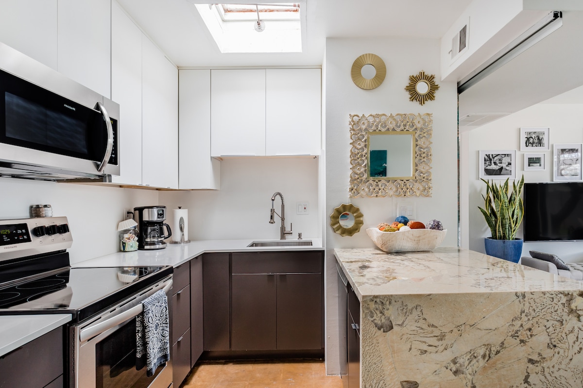 Escápate a «The Edith», un refugio de ensueño en Phoenix que lleva el nombre de la esposa de Roosevelt. Elegantemente remodelado, apto para mascotas, luminoso y espacioso con un diseño ecléctico, electrodomésticos nuevos, secador de pelo Dyson y artículos de aseo de lujo. Justo enfrente de Margaret T. Hance Park, con sus festivales de música, servicios al aire libre y parque para perros. Satisface tus antojos en restaurantes de moda o súbete al tren ligero para explorar lo mejor del centro de Phoenix. Aparcamiento gratuito.