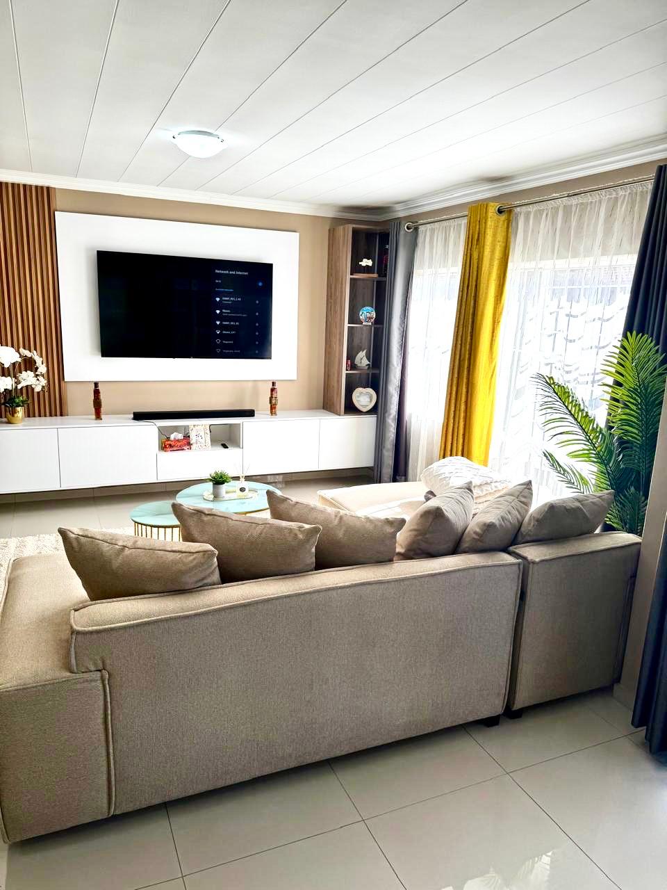 This up market unit is perfect for a home away from home. Lock up and go, secure safe suburb , set in beautiful garden. Easy access to Highways. Comfortable King size bed for great nights sleep. Suitable for short or long term rental, staycation, celebration or business trip. Serviced daily except Sundays and public holidays! Unit comes with one parking bay. Lights, TV and WiFi available during load shedding! Property has a borehole with purified water. Unit has an aircon.