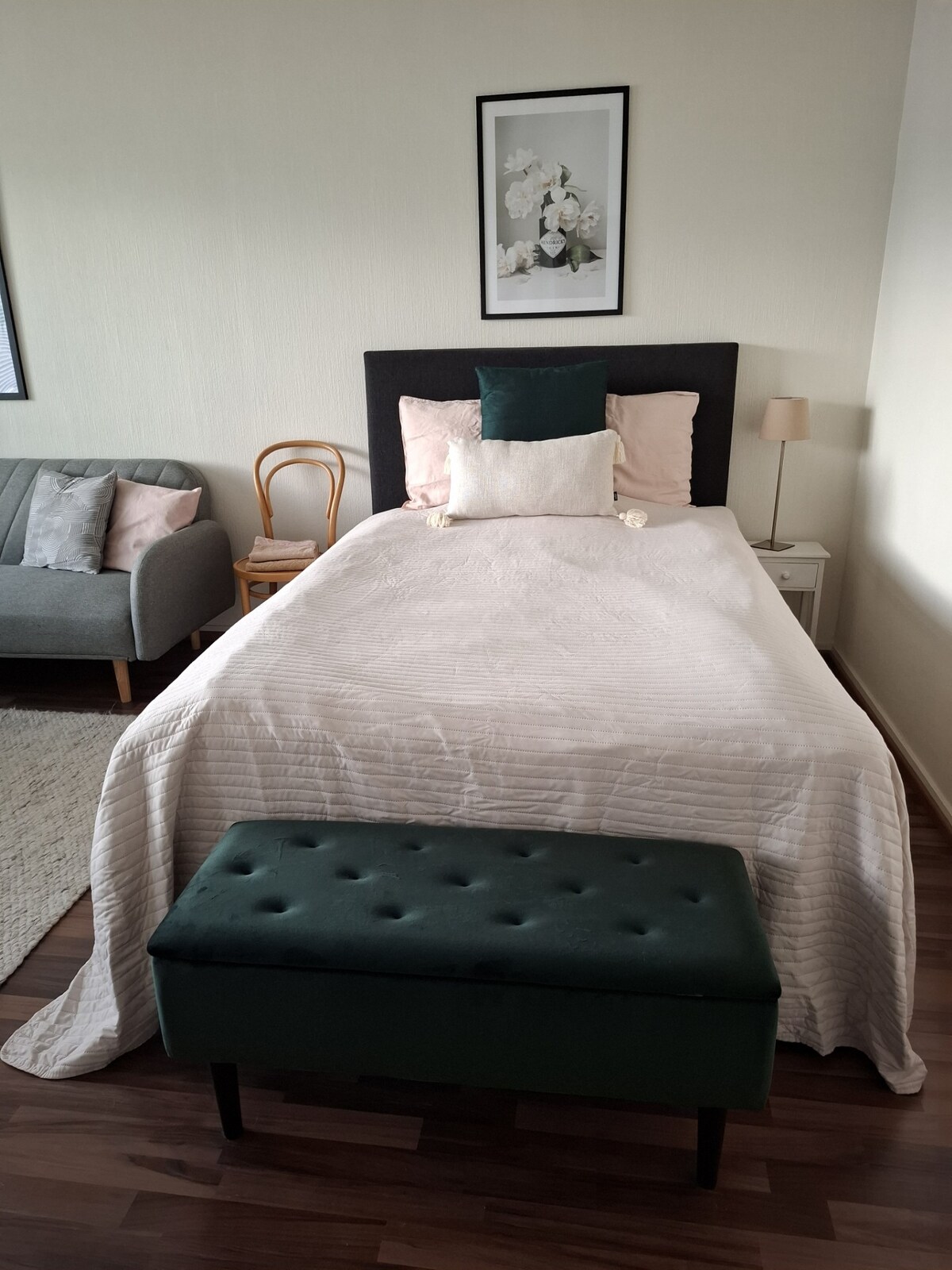 El apartamento es un estudio acogedor y luminoso a menos de diez minutos del centro de la ciudad. El apartamento tiene una cama nueva y cómoda y un sofá cama que se puede esparcir. La cocina es compacta pero muy bien equipada y el apartamento también es adecuado para estancias más largas. Hay un lugar para nadar para un ávido nadador de invierno a solo 100 metros de distancia, y también hay encantadoras rutas de senderismo desde la playa. Hay una plaza de aparcamiento gratuita para el coche en el patio de la casa o en la calle adyacente. Hay una parada de autobuses frente a la casa.