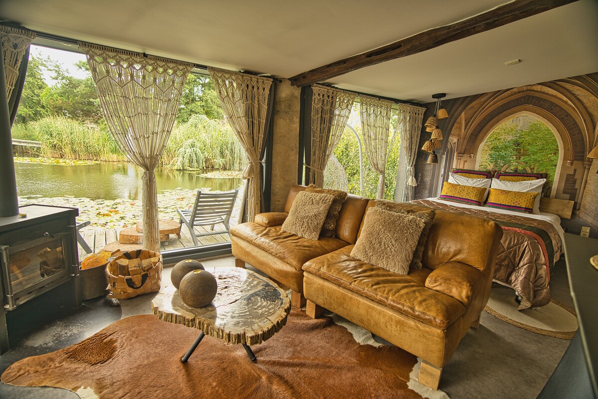 ¡Siéntase bienvenido! Esta espaciosa casa de campo con entrada privada se encuentra detrás de nuestra casa (al otro lado de nuestro rico jardín). ♡ Sala de estar con chimenea de gas, cine, cocina con nevera / horno combinado / hervidor de agua / placa de cocción, baño con ducha de lluvia, un altillo con cama de matrimonio. ♡ Amplia terraza con sombrilla, muebles de jardín y una barbacoa ♡ Sauna y jacuzzi por un suplemento (45 €). A ♡ 15 minutos a pie de Haagse Markt (restaurantes y tiendas) 10 minutos en coche/15 minutos en bicicleta al centro de Breda.