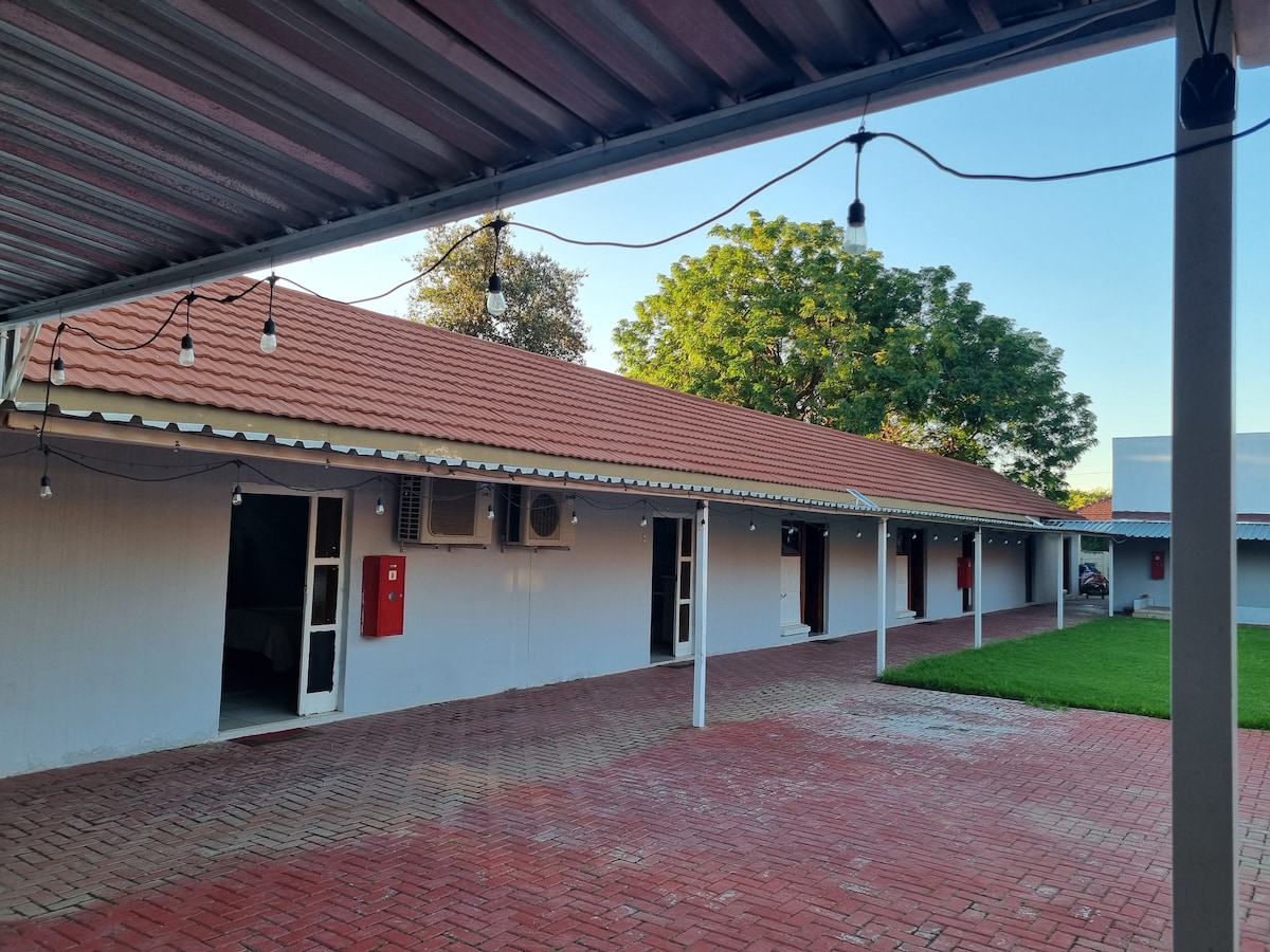 Encantador chalet en la calle más hermosa de Kroonstad Disfruta de un refugio cálido y espacioso en este chalet de planta abierta para un máximo de tres huéspedes. La cocina pequeña incluye microondas, nevera y cafetera/tetera. Duerme profundamente en una cama doble e individual, con calentador de gas y mantas eléctricas para las noches frías. Las instalaciones de Braai, el estacionamiento seguro y una ubicación privilegiada cerca de escuelas y Checkers Centre hacen de esta una estancia cómoda y acogedora.