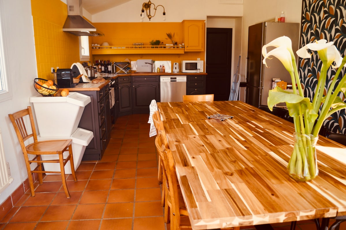 Simplifíquese la vida en este alojamiento tranquilo y céntrico. Casa reformada con el espíritu de las Cícladas como un nido luminoso. Gran sala de estar de 30 m2 con salón comedor cocina que da a una terraza para comidas al sol. Una estufa completa esta habitación para calentar los pocos días de lluvia que nunca duran. Arriba, una pequeña escalera conduce a 2 dormitorios con un baño con ducha en el centro. 1 dormitorio principal con cama de 160 cm x 200 cm 1 habitación para niños 2 camas de 90 x 200. La serenidad.