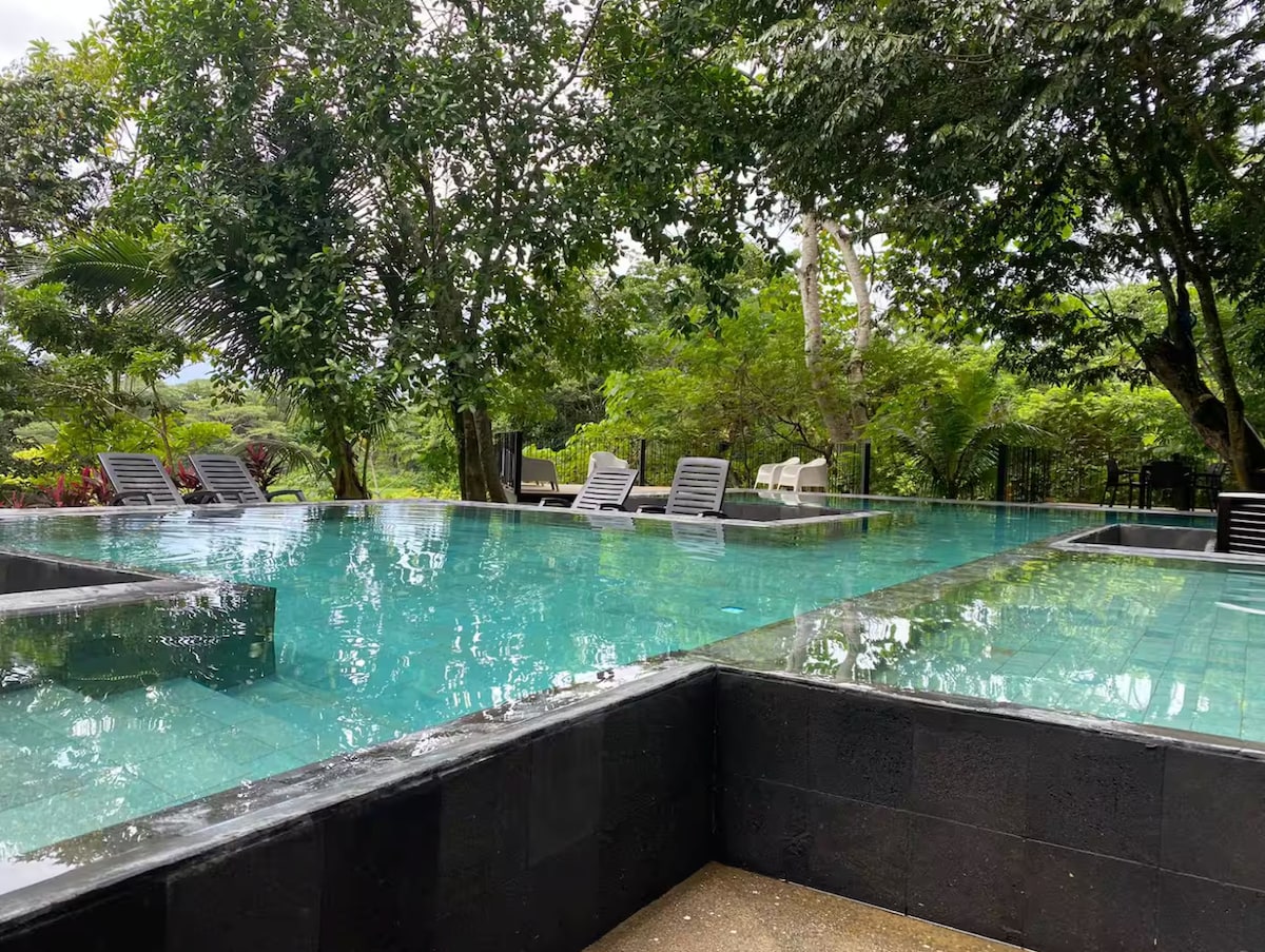 Lujoso oasis estilo resort con piscina y vista a la selva