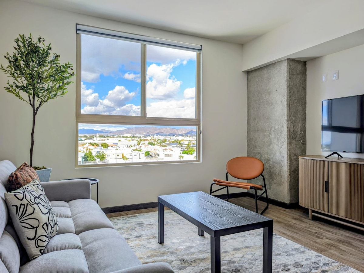 ¡Vive la experiencia de alojarte en Distrito Lofts! Distrito Lofts es del nuevo concepto de renta de departamentos en la ciudad de Hermosillo, Sonora. Departamentos de lujo, con espacios diseñados y amueblados con la mejor calidad, cuidando de todos sus detalles para su seguridad y comodidad. Departamentos totalmente equipados con todos los servicios incluidos. ¡Limpieza incluida 3 días! Cama adicional de tamaño individual para reservas de más de 2 personas.